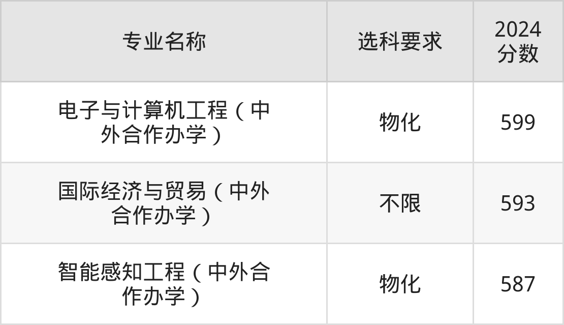 | 电子与计算机工程(中 外合作办学) | 物化 | 555 |