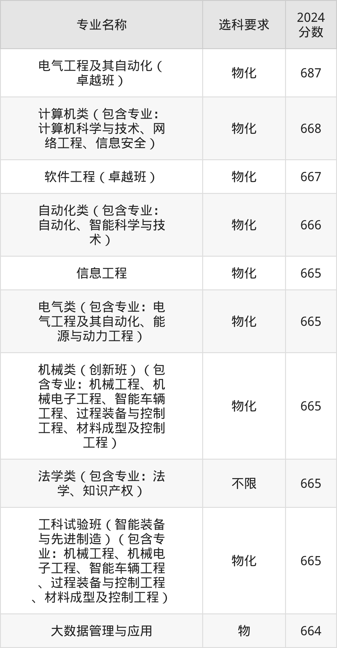 | 电气工程及其自动化( 卓越班) | 物化 | 649 |