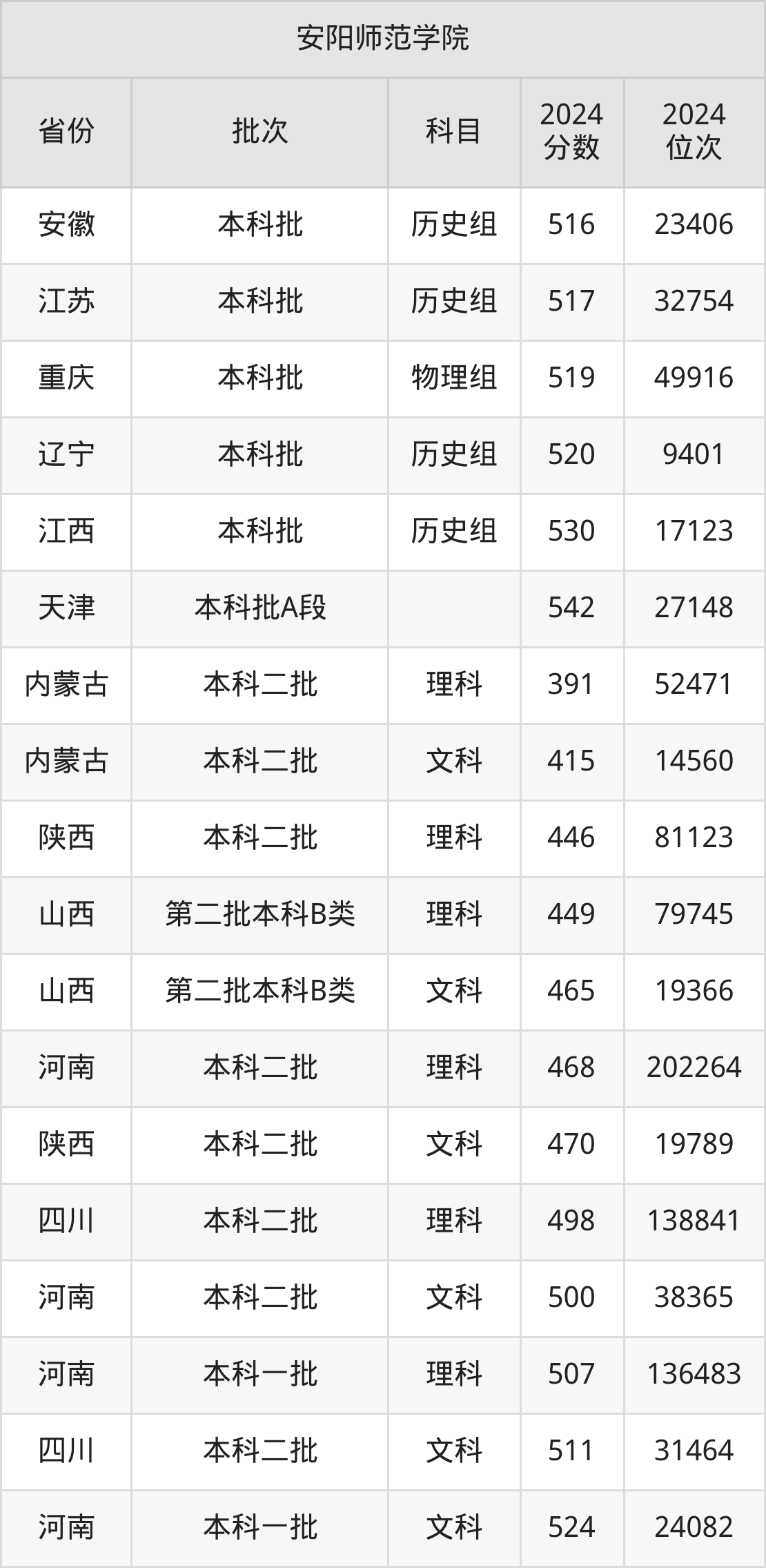 二、安阳师范学院2024年录取分数线汇总