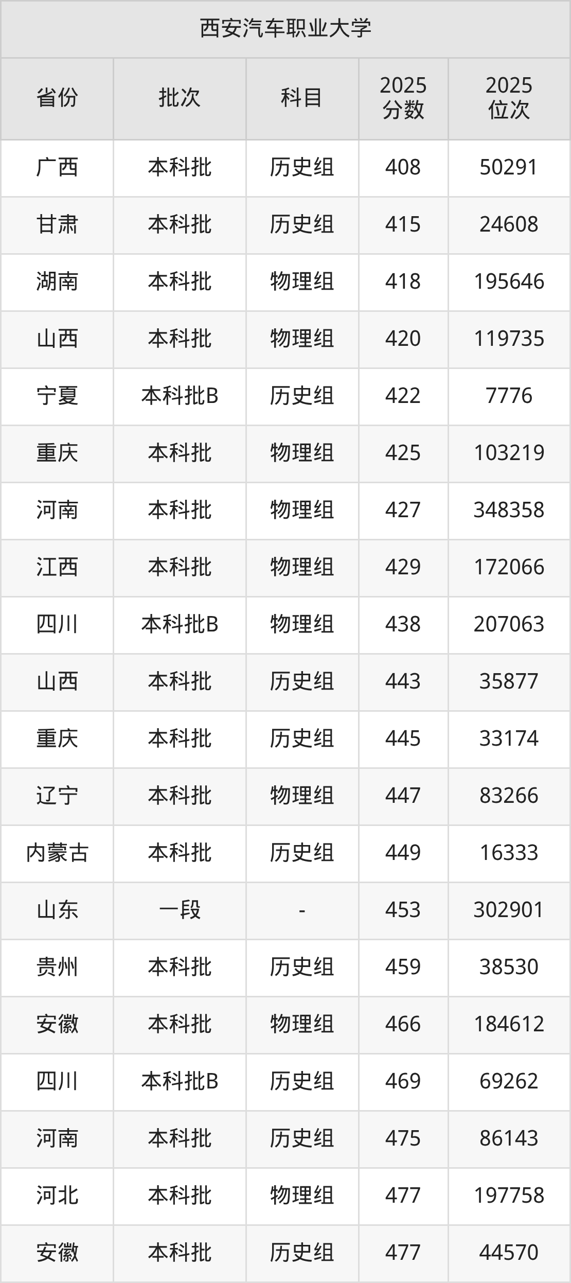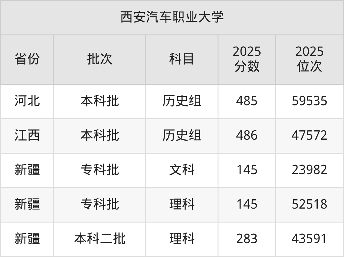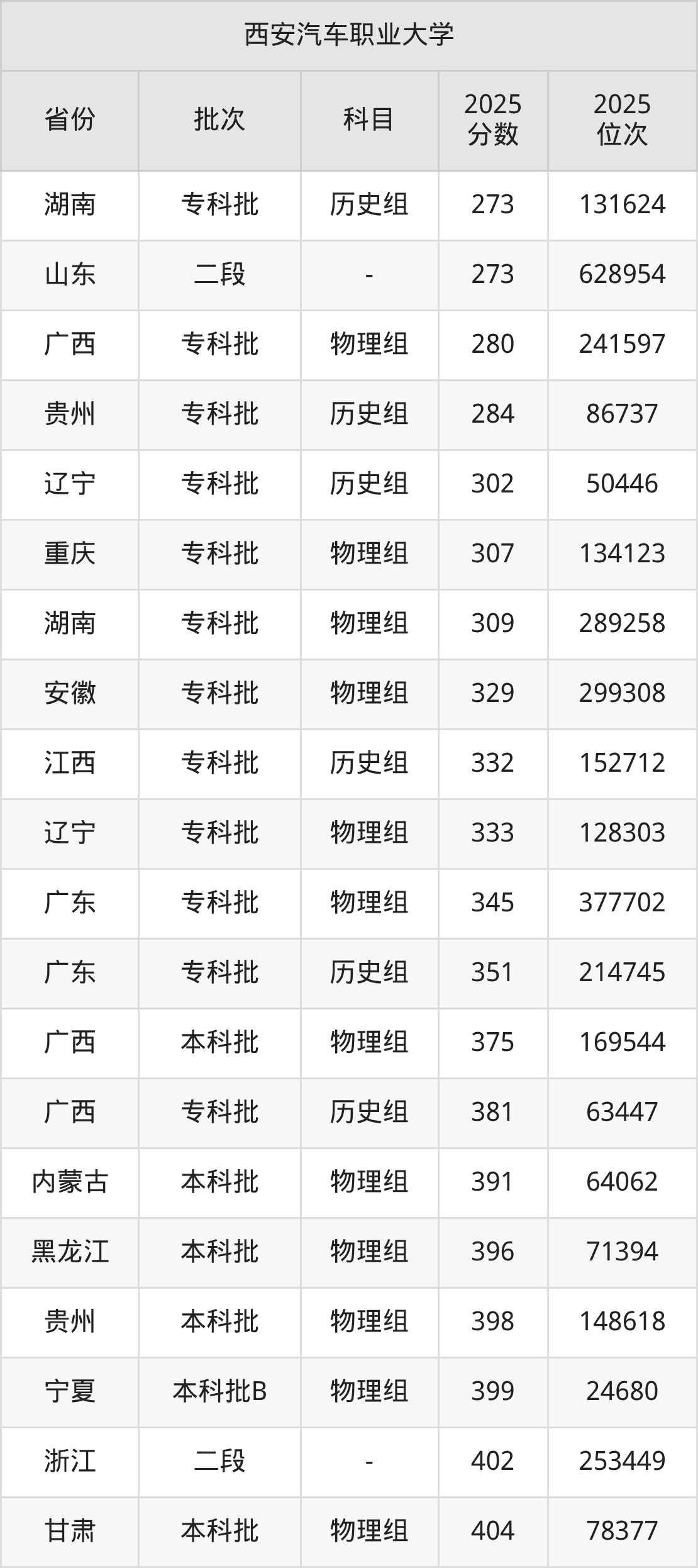 圆梦小编为2026届想要报考西安汽车职业大学的同学整理了:西安汽车职业大学2025年在全国21个省的最低分及录取位次。