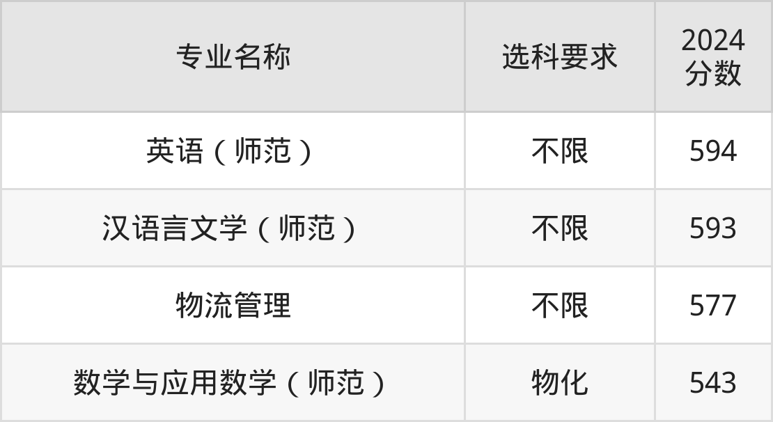 对于浙江高三学生而言,绵阳师范学院热门专业是:英语、汉语言文学、物流管理、数学与应用数学,2024年在浙江的最低分是543至594。