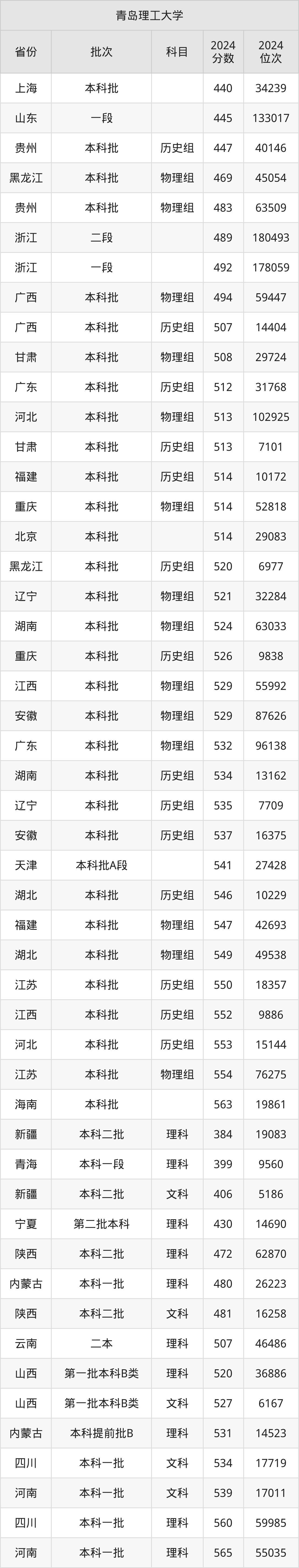 圆梦小编为2025届想要报考青岛理工大学的同学整理了:青岛理工大学2024年在全国29个省的最低分及录取位次。