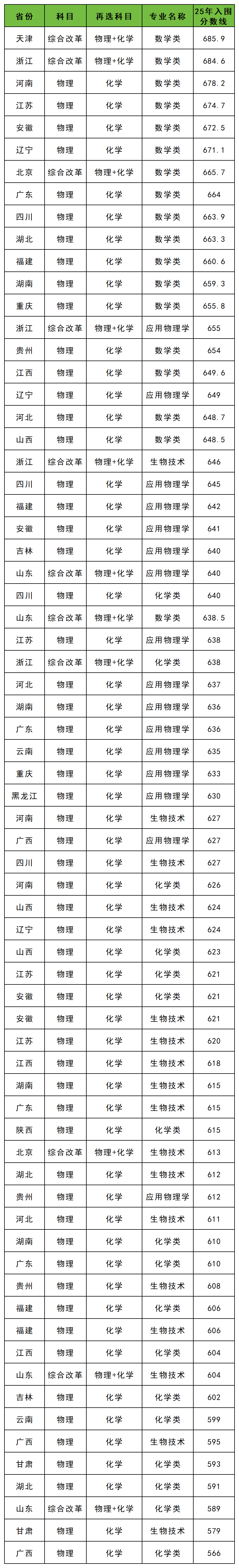 三、华南理工大学2025年强基分数线