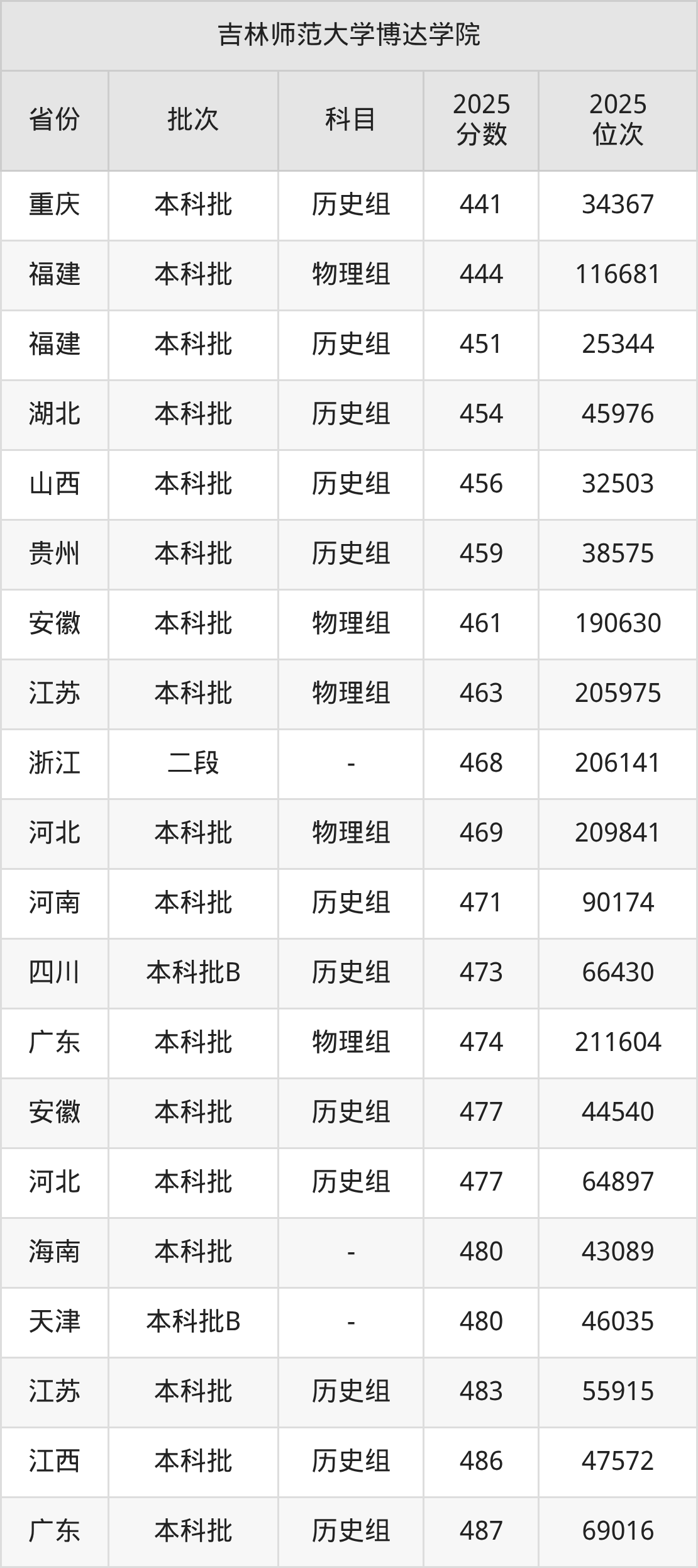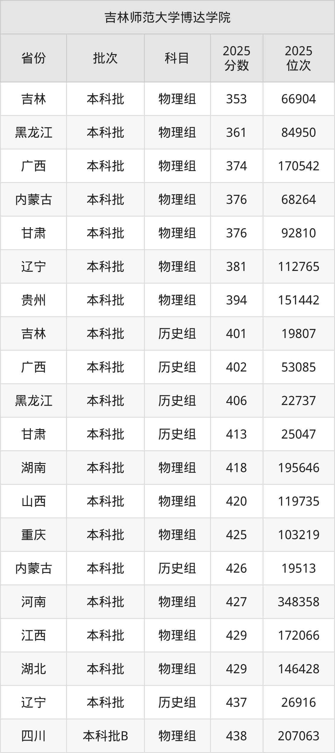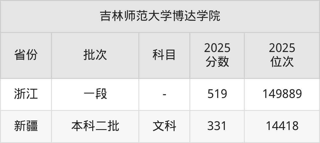 二、吉林师范大学博达学院2025年录取分数线汇总