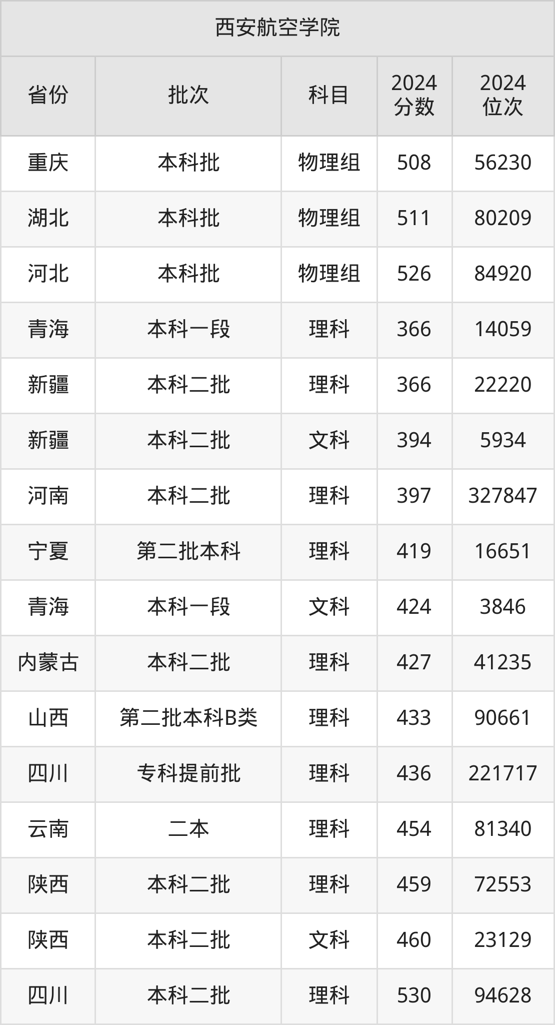 圆梦小编为2025届想要报考西安航空学院的同学整理了:西安航空学院2024年在全国25个省的最低分及录取位次。