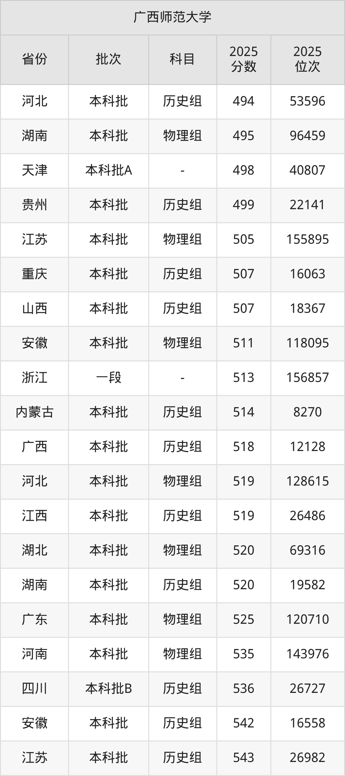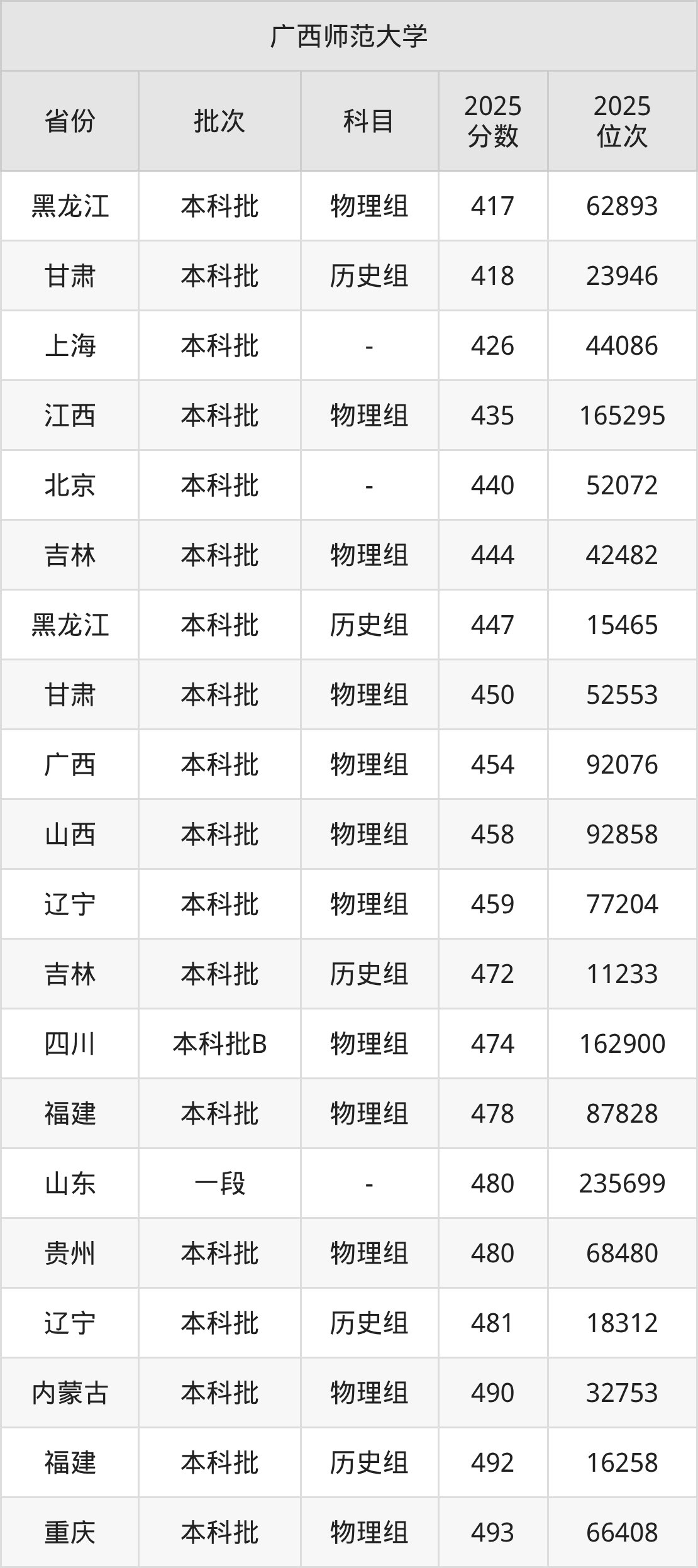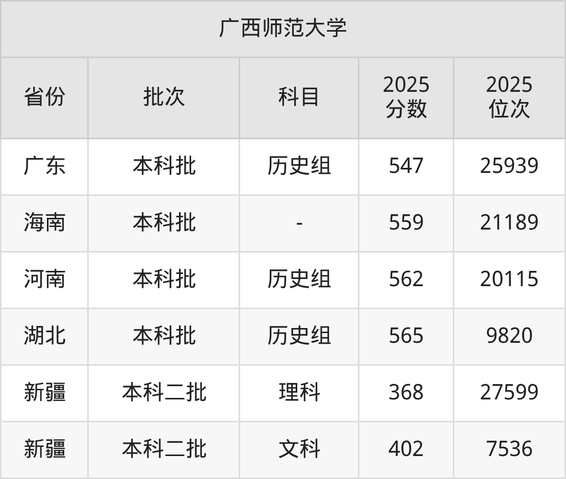 二、广西师范大学2025年录取分数线汇总