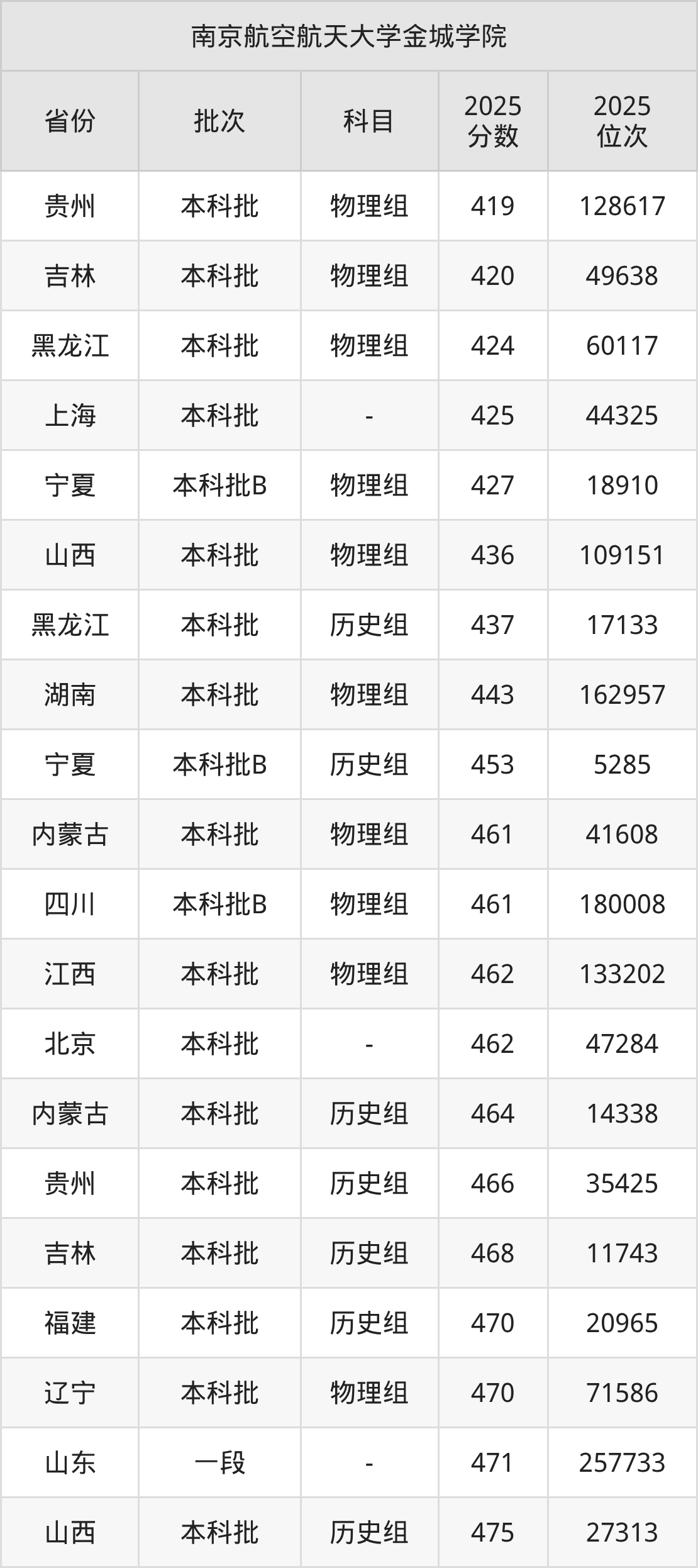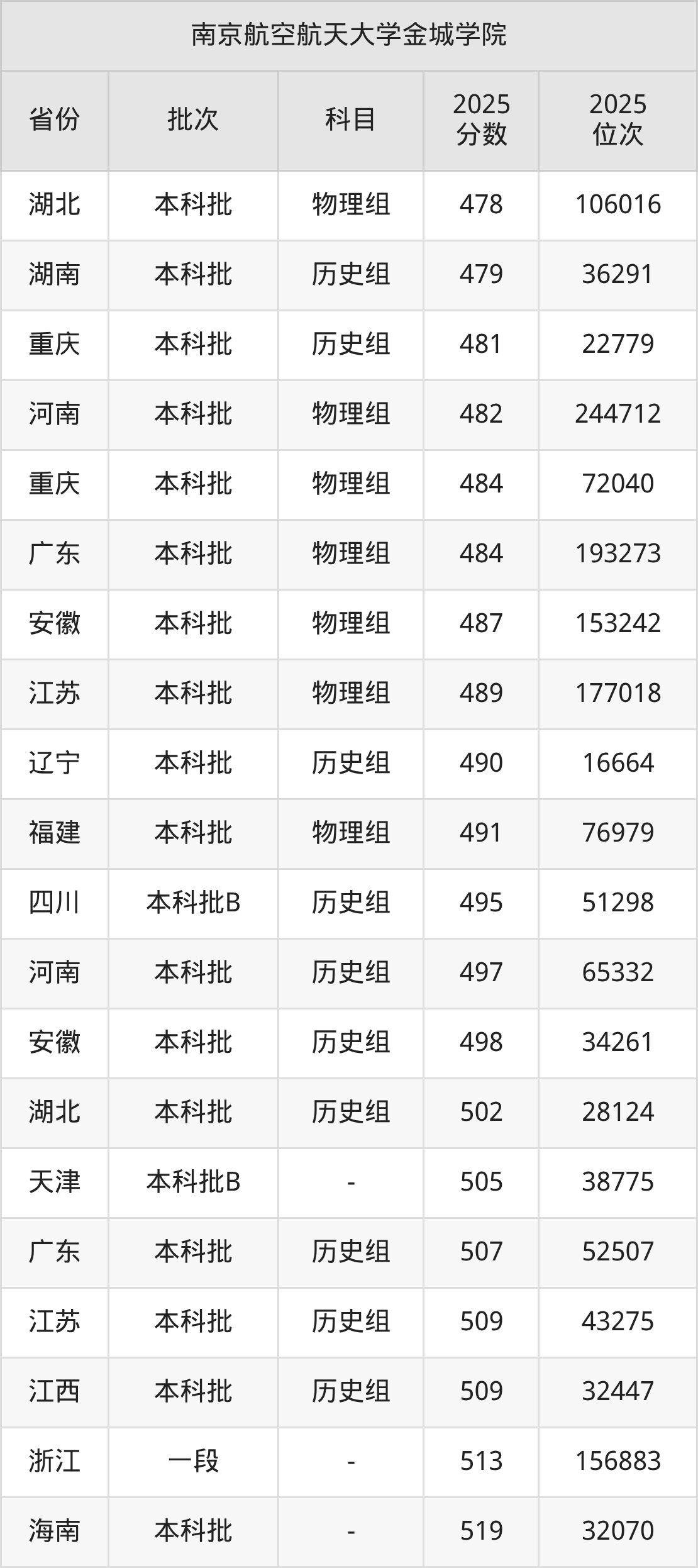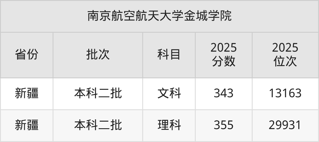 二、南京航空航天大学金城学院2025年录取分数线汇总