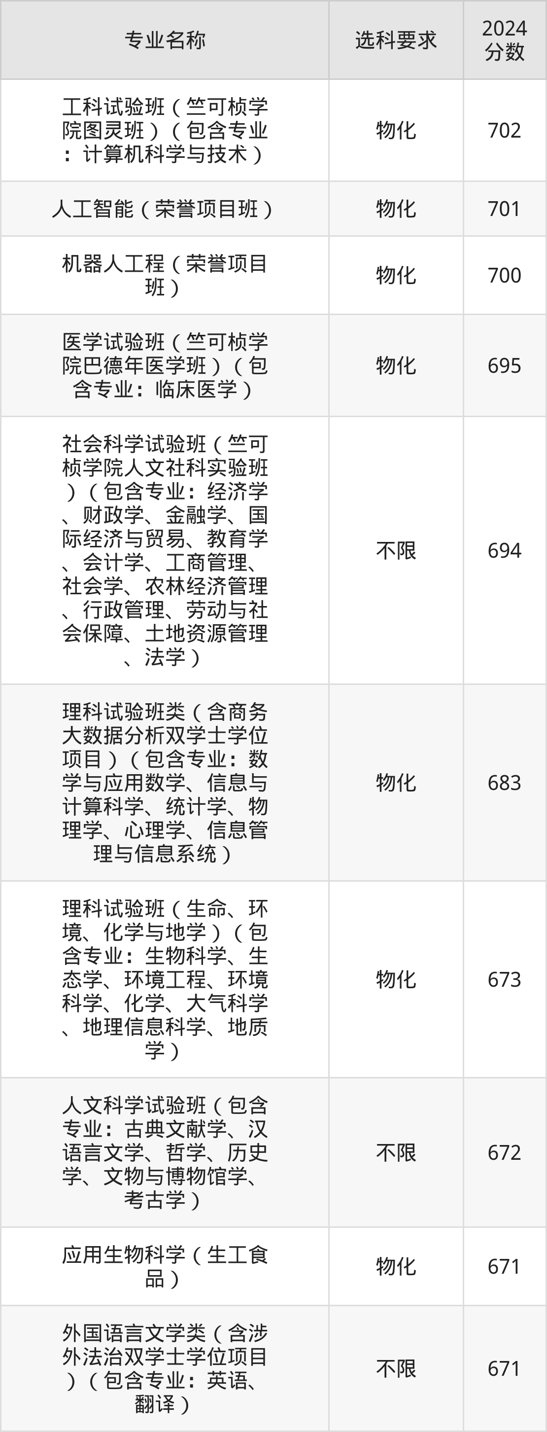 | 工科试验班(竺可桢学 院图灵班)(包含专业 :计算机科学与技术) | 物化 | 687 |