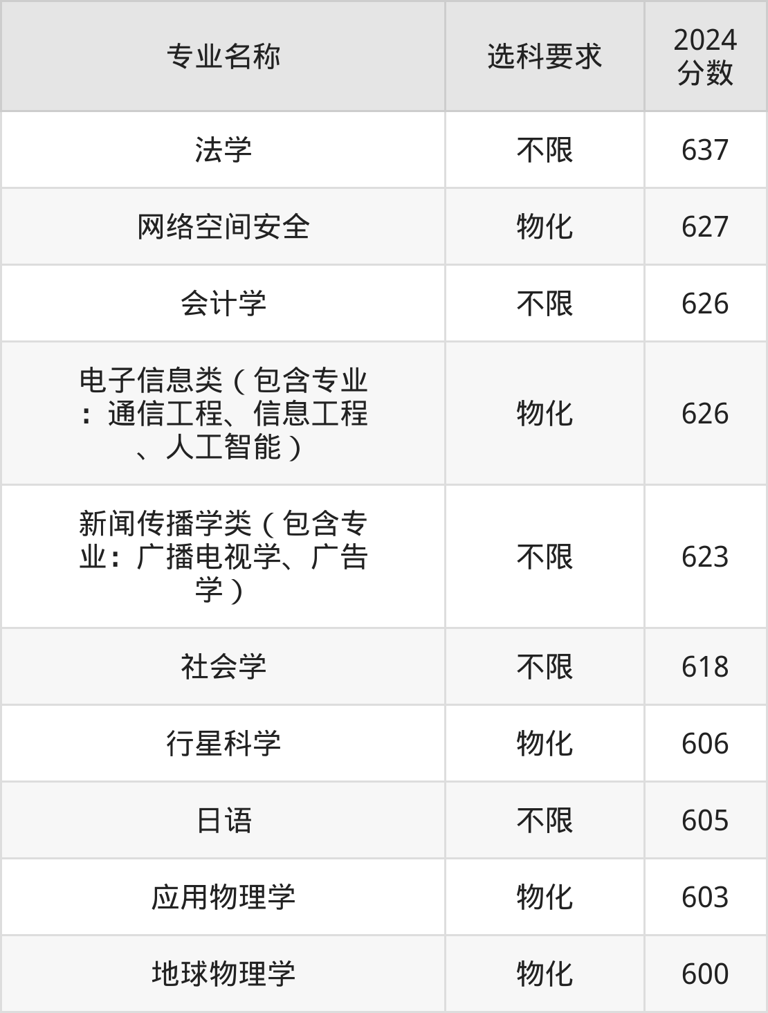 | 电子信息类(包含专业 :通信工程、信息工程 、人工智能) | 物化 | 593 |