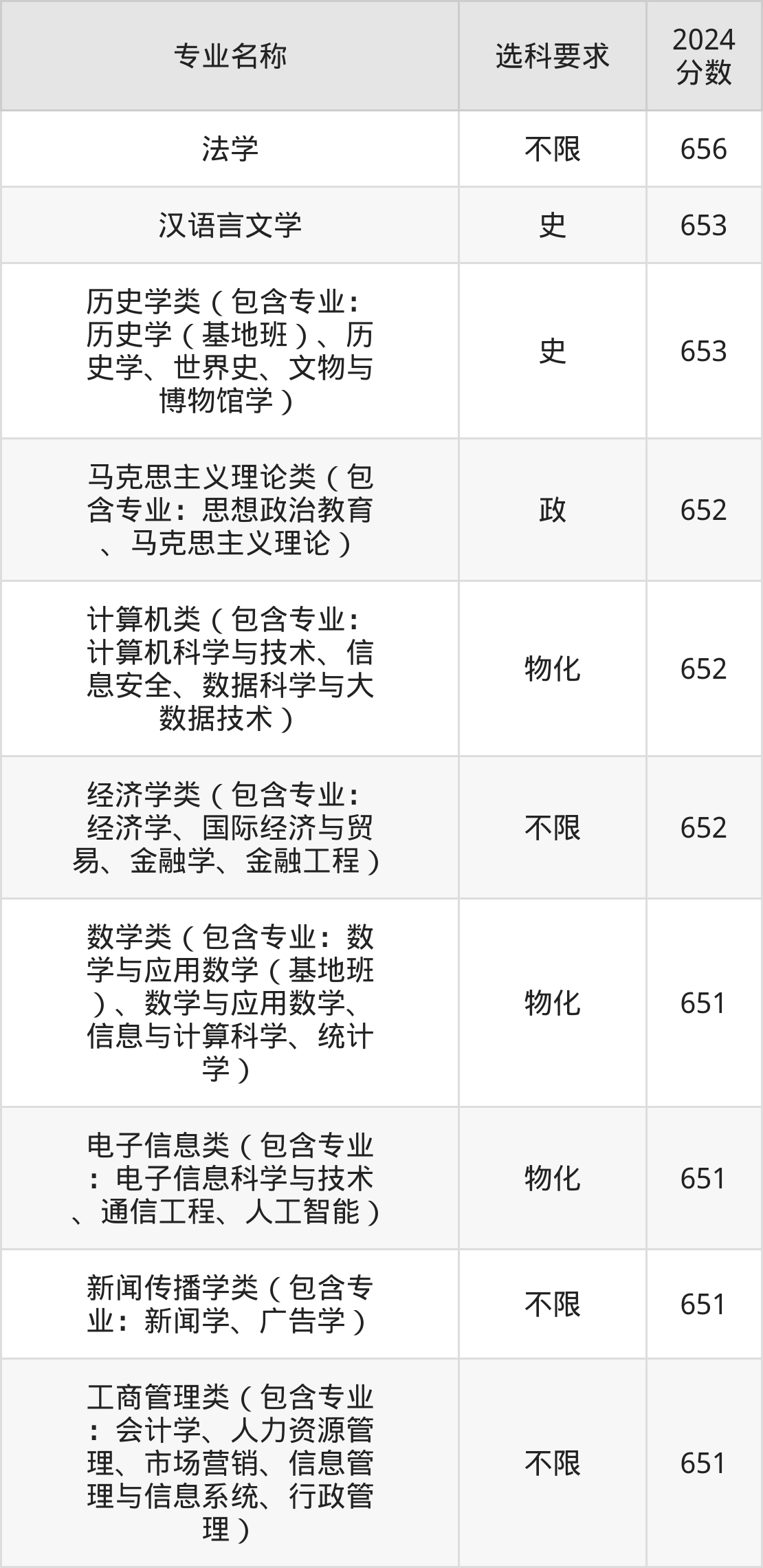 | 专业名称 | 选科要求 | 2024 分数 |