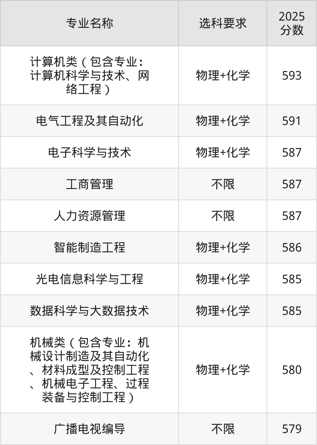 | 计算机类(包含专业: 计算机科学与技术、网 络工程) | 物理+化学 | 582 |