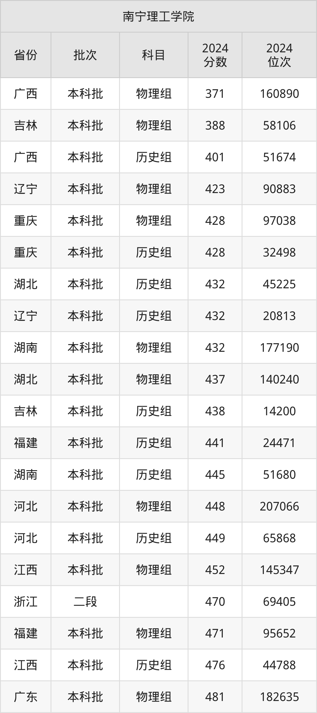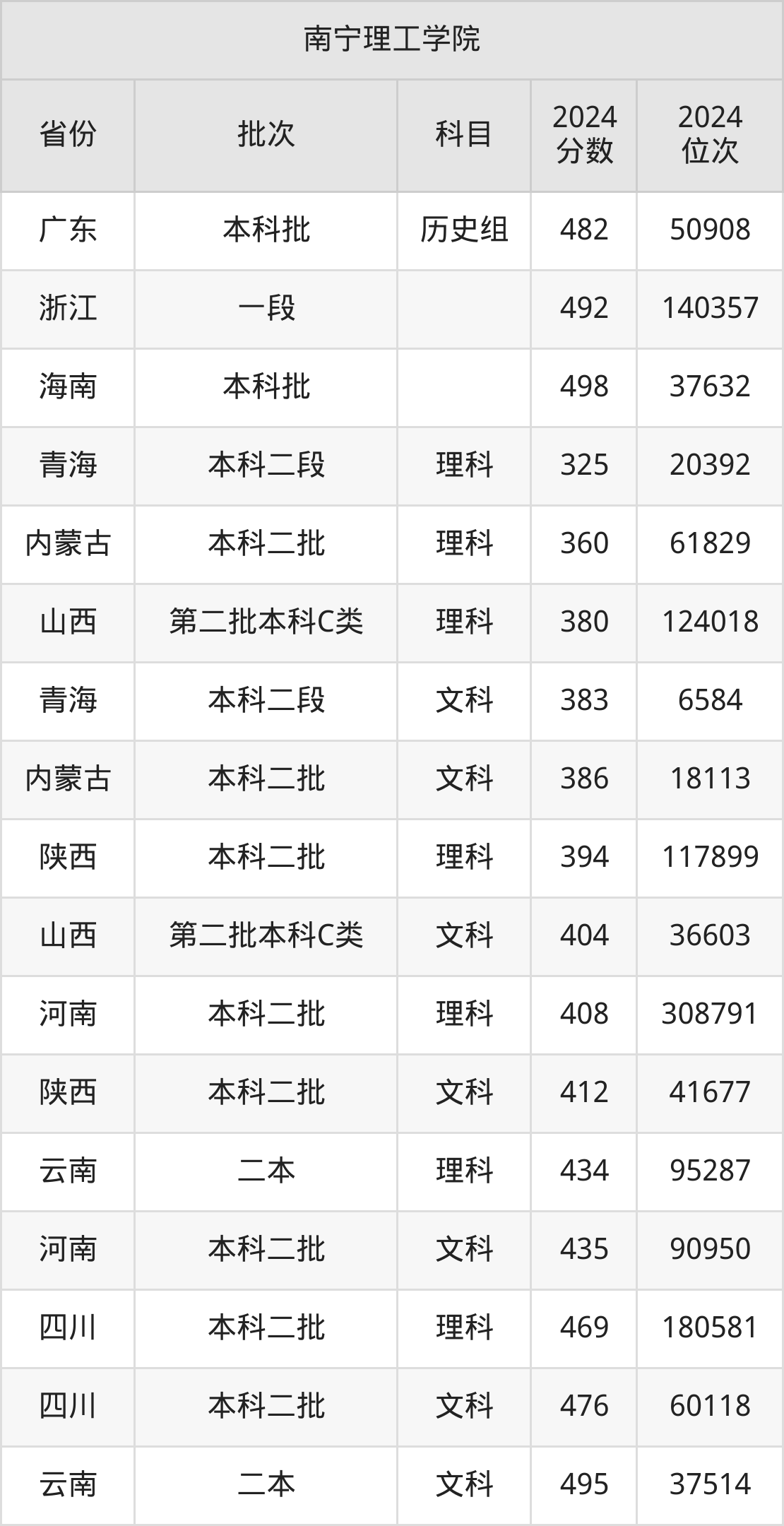 二、南宁理工学院2024年录取分数线汇总