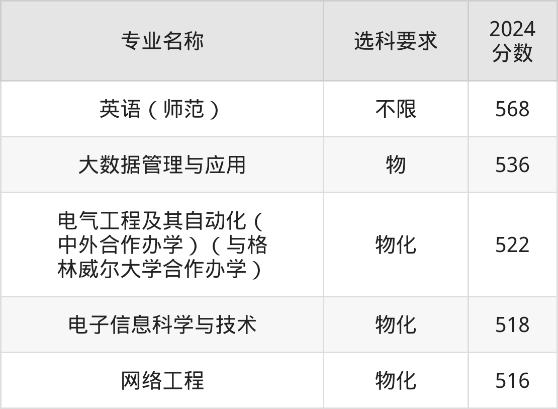 | 电气工程及其自动化( 中外合作办学)(与格 林威尔大学中外合作办 学项目) | 物化 | 473 |