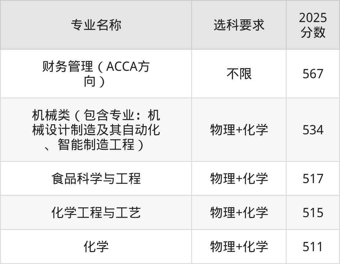 | 专业名称 | 选科要求 | 2025 分数 |