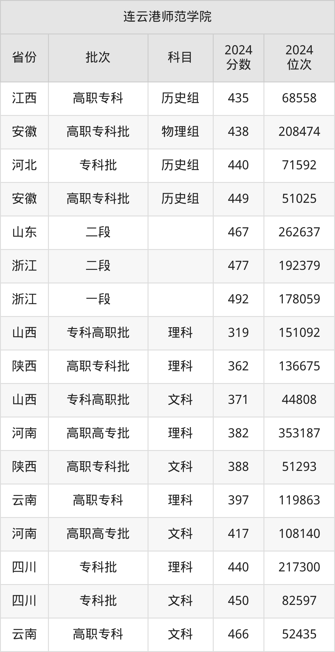 圆梦小编为2025届想要报考连云港师范学院的同学整理了:连云港师范学院2024年在全国19个省的最低分及录取位次。