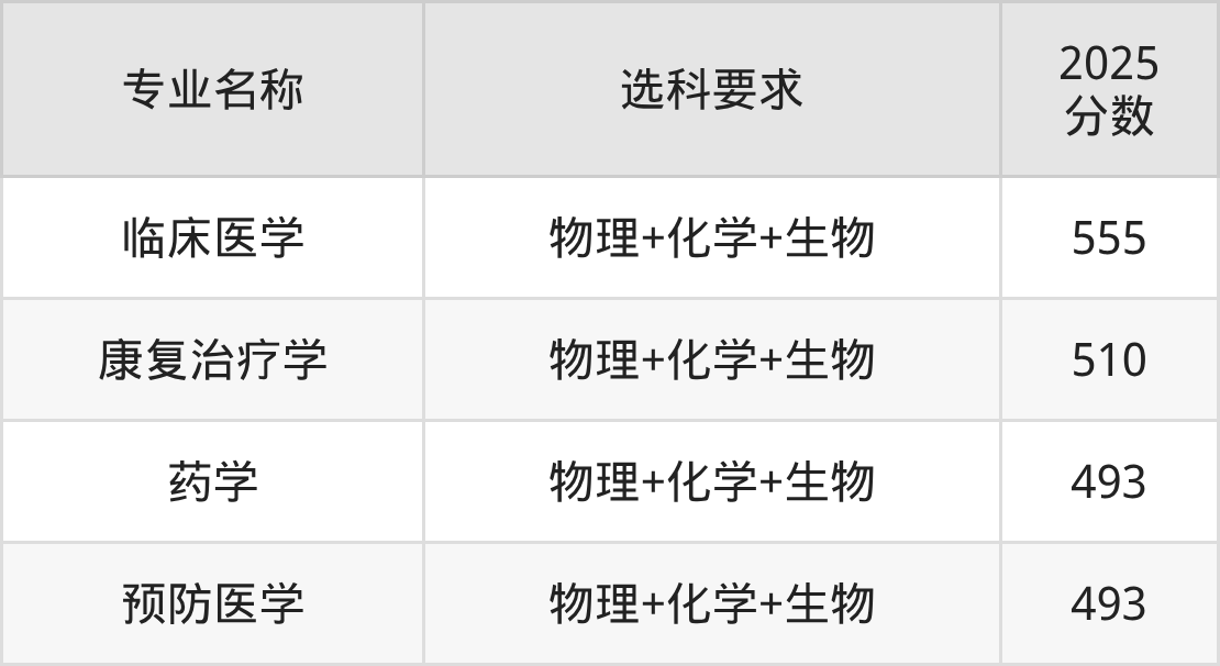 | 专业名称 | 选科要求 | 2025 分数 |