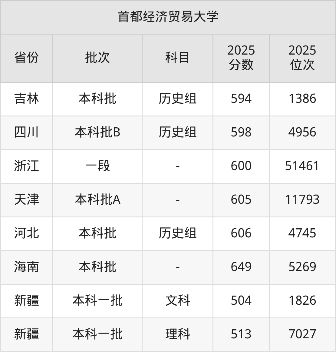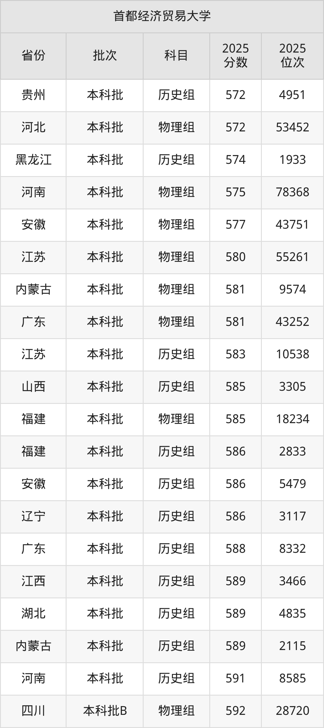 圆梦小编为2026届想要报考首都经济贸易大学的同学整理了:首都经济贸易大学2025年在全国27个省的最低分及录取位次。