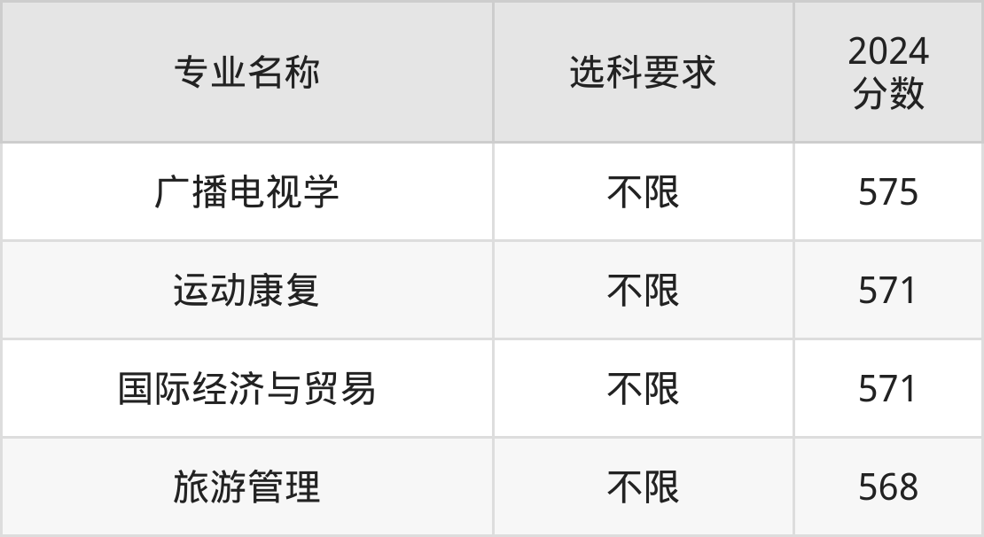 | 专业名称 | 选科要求 | 2024 分数 |