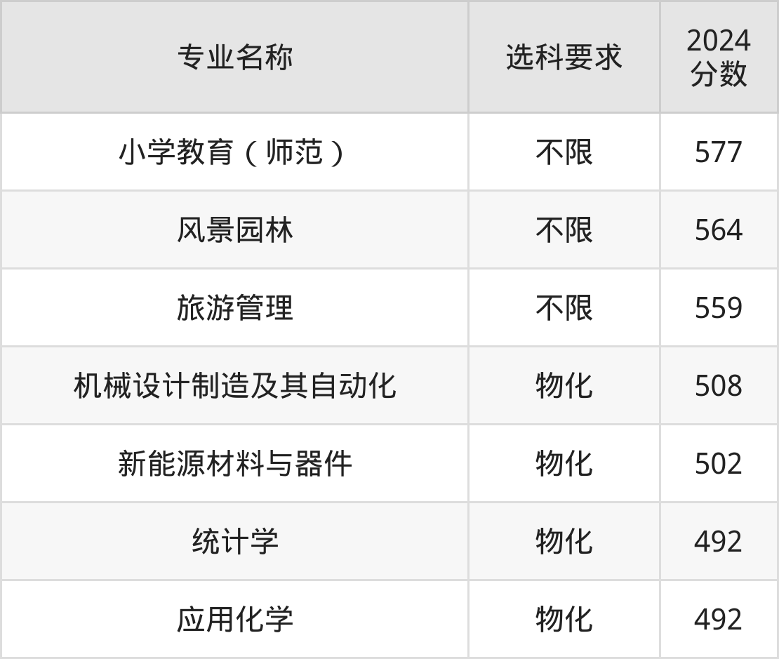 | 专业名称 | 选科要求 | 2024 分数 |