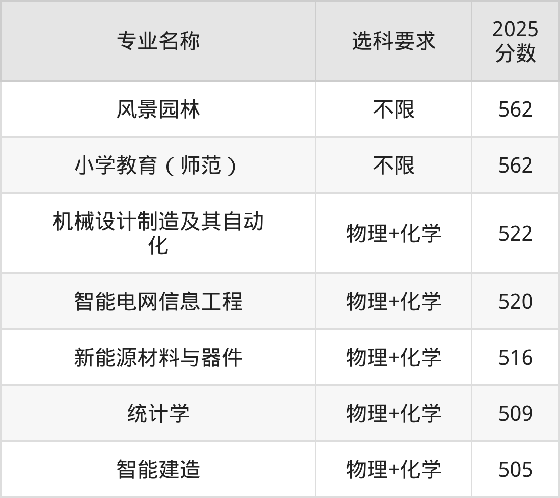 对于浙江高三学生而言,许昌学院热门专业是:风景园林、小学教育、机械设计制造及其自动化、智能电网信息工程、新能源材料与器件、统计学、智能建造,2025年在浙江的最低分是505至562。