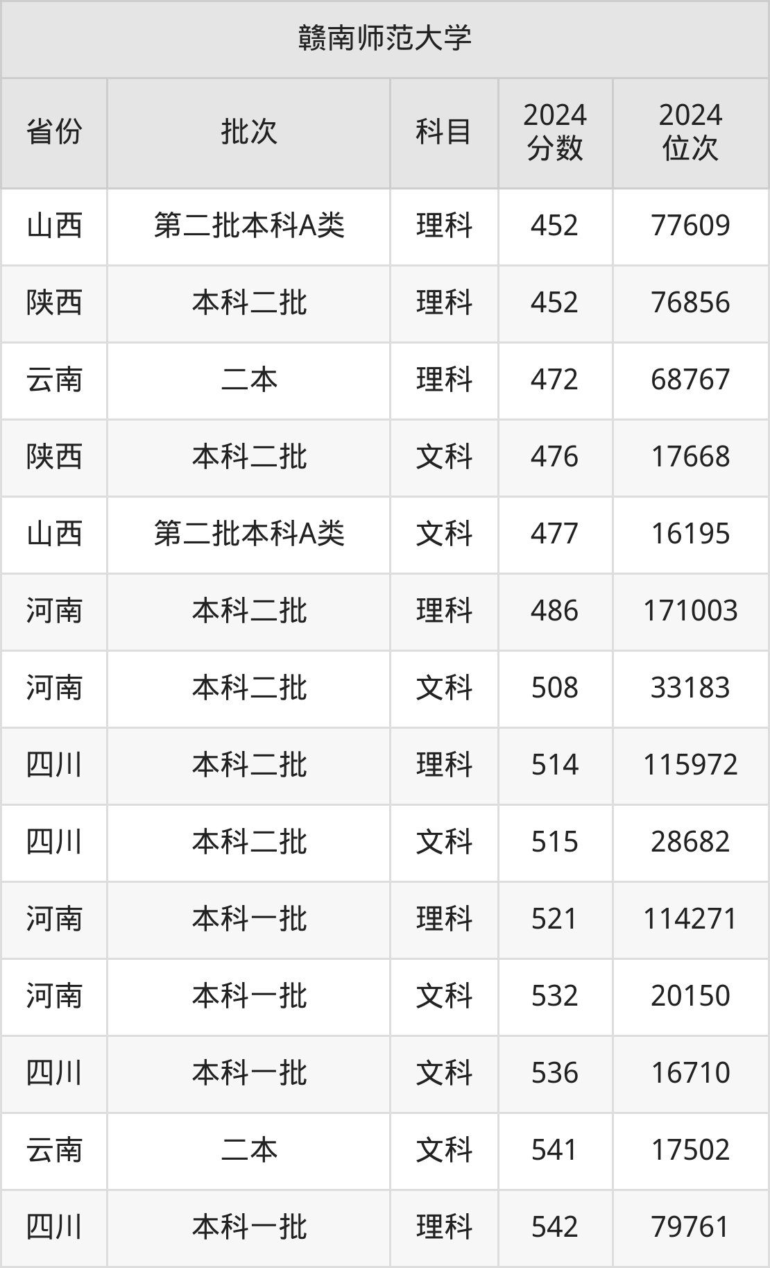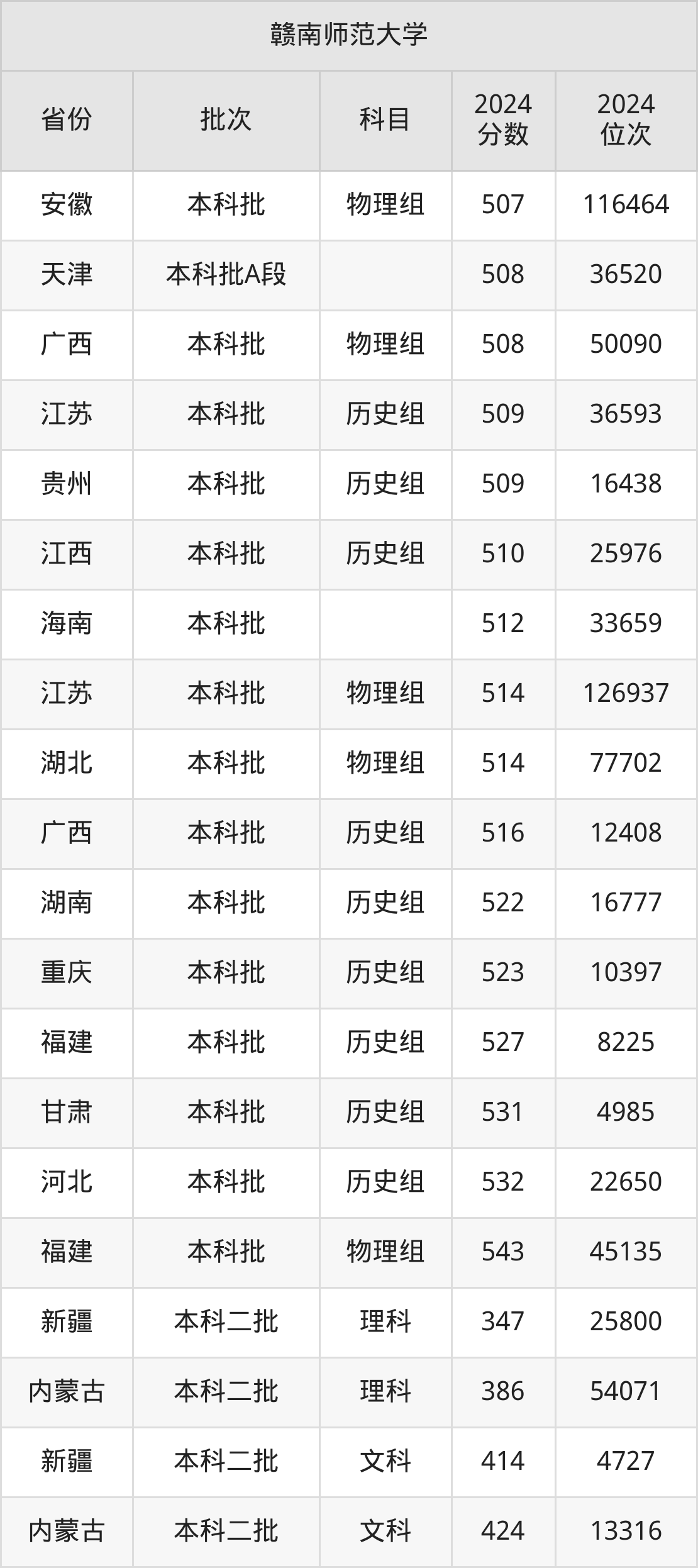 二、赣南师范大学2024年录取分数线汇总