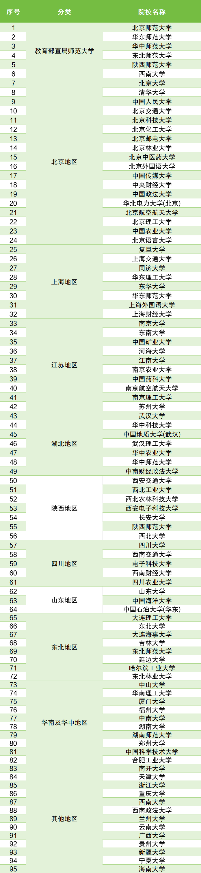 1.教育部直属师范大学(6所)