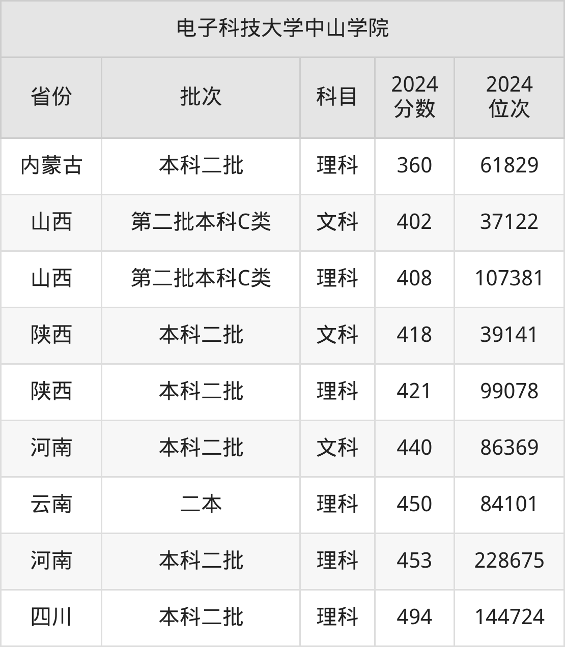 圆梦小编为2025届想要报考电子科技大学中山学院的同学整理了:电子科技大学中山学院2024年在全国19个省的最低分及录取位次。