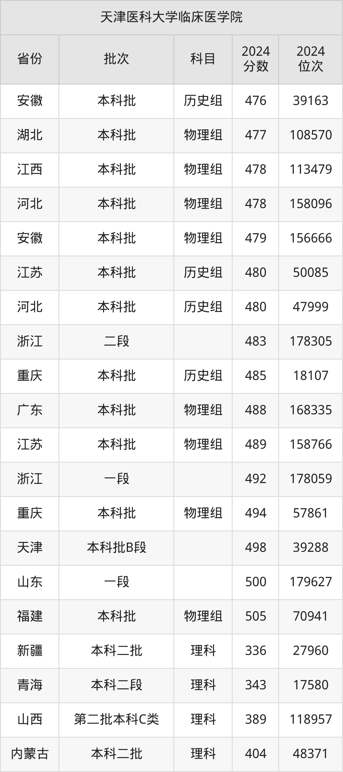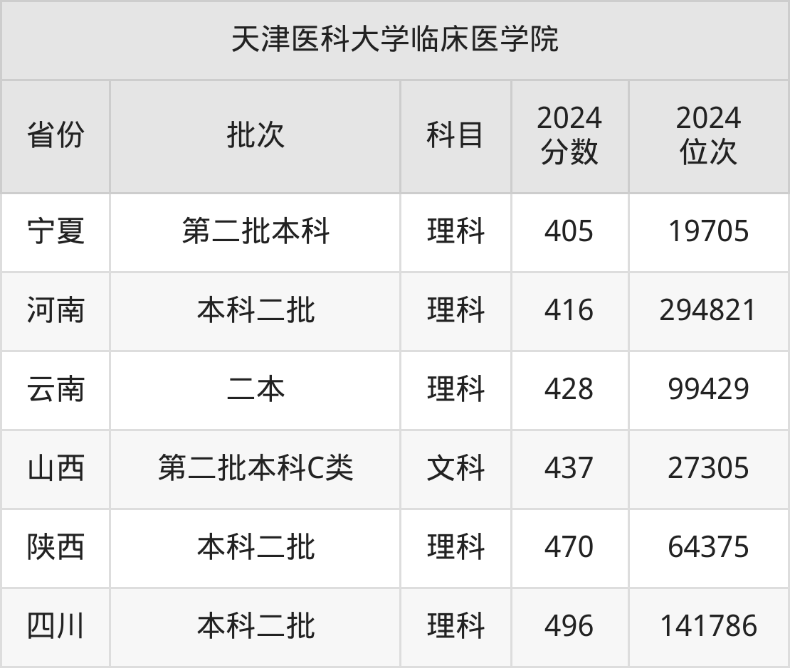二、天津医科大学临床医学院2024年录取分数线汇总