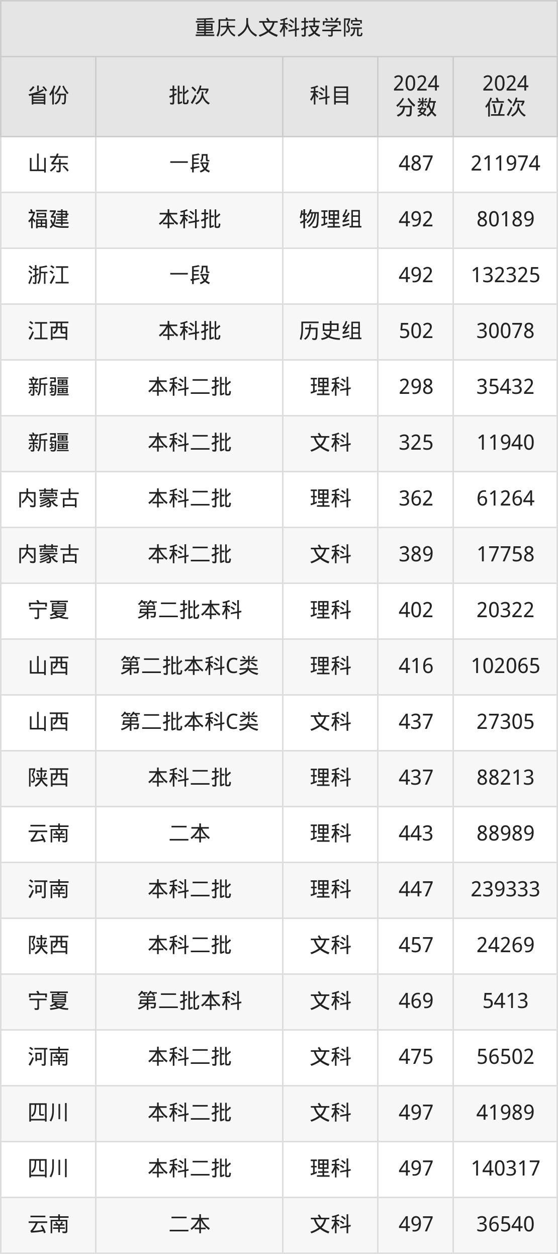 圆梦小编为2025届想要报考重庆人文科技学院的同学整理了:重庆人文科技学院2024年在全国21个省的最低分及录取位次。