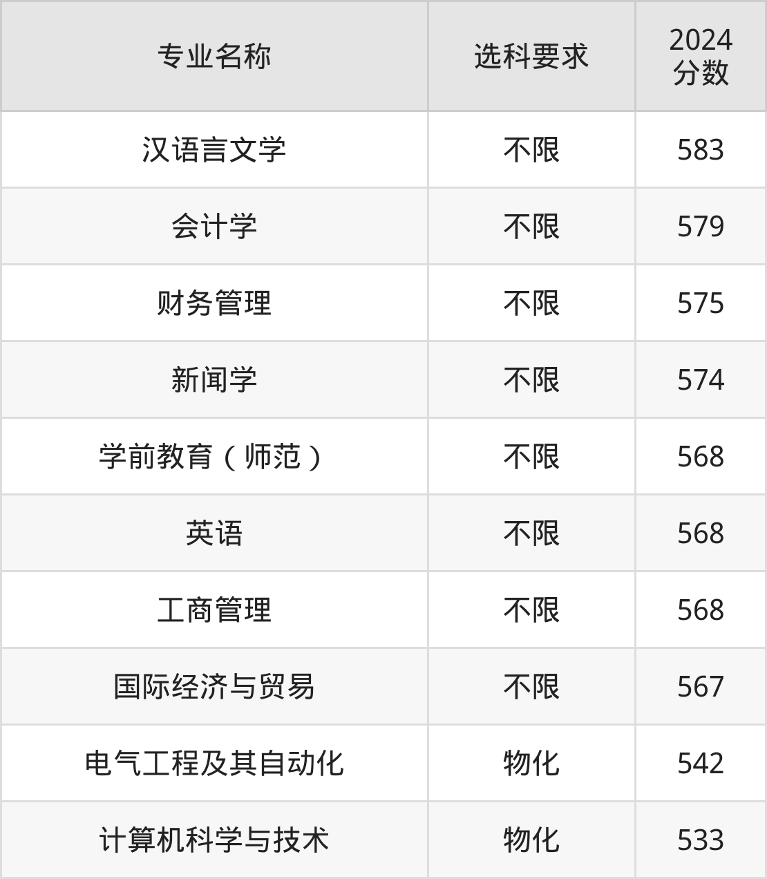 | 专业名称 | 选科要求 | 2024 分数 |