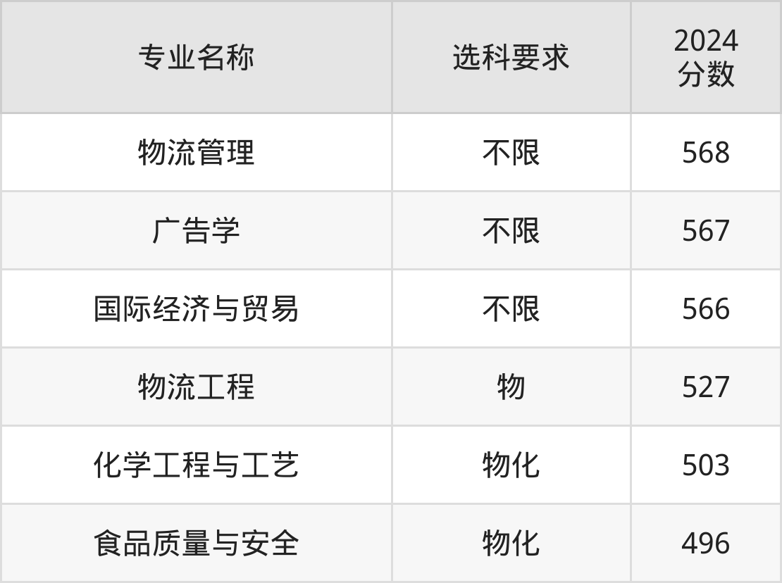 对于浙江高三学生而言,郑州工程技术学院热门专业是:物流管理、广告学、国际经济与贸易、物流工程、化学工程与工艺、食品质量与安全,2024年在浙江的最低分是496至568。
