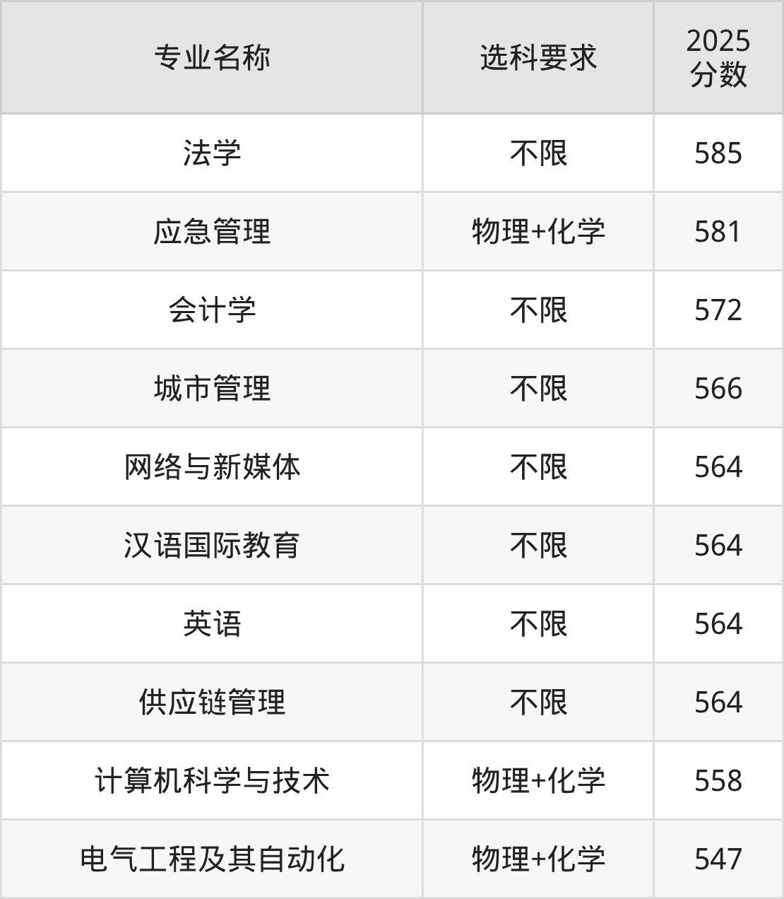 | 专业名称 | 选科要求 | 2025 分数 |