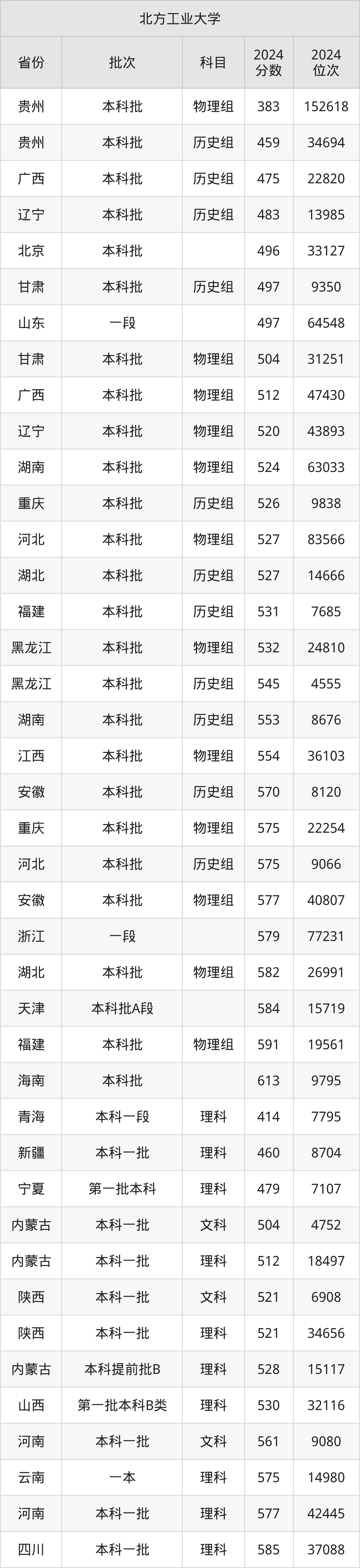二、北方工业大学2024年录取分数线汇总