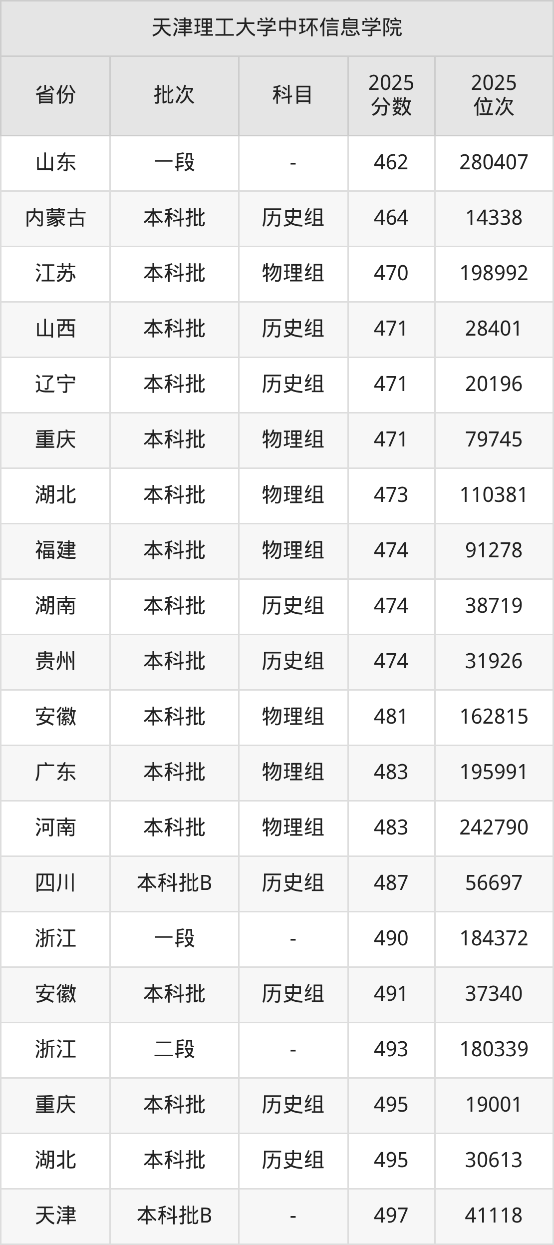 二、天津理工大学中环信息学院2025年录取分数线汇总