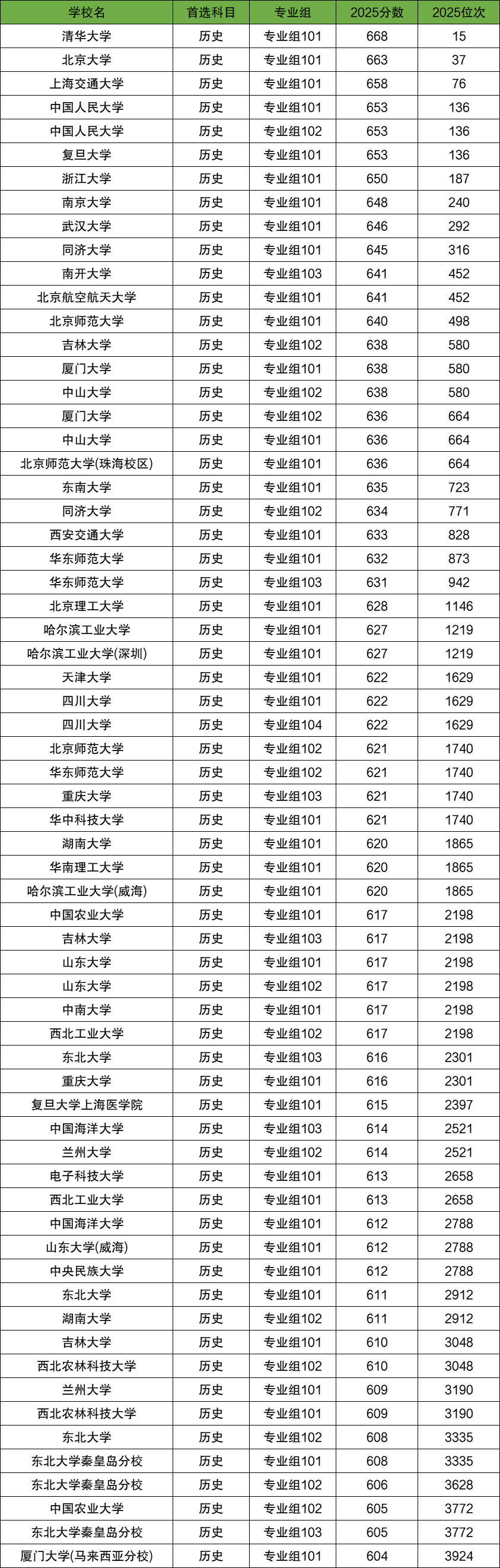 不难发现,历史物理类分数线最高的大学,相差不大,基本上都是全国排名最靠前的几所顶尖高校。