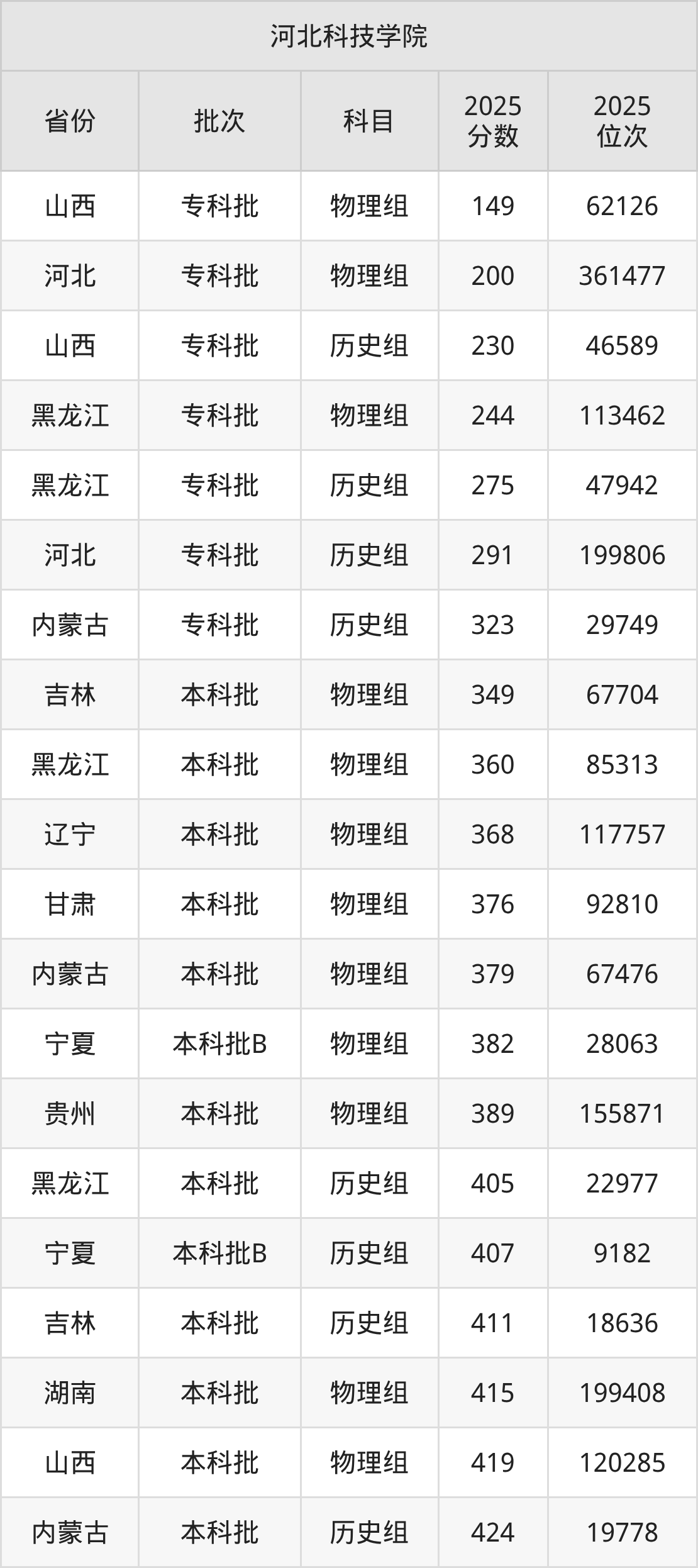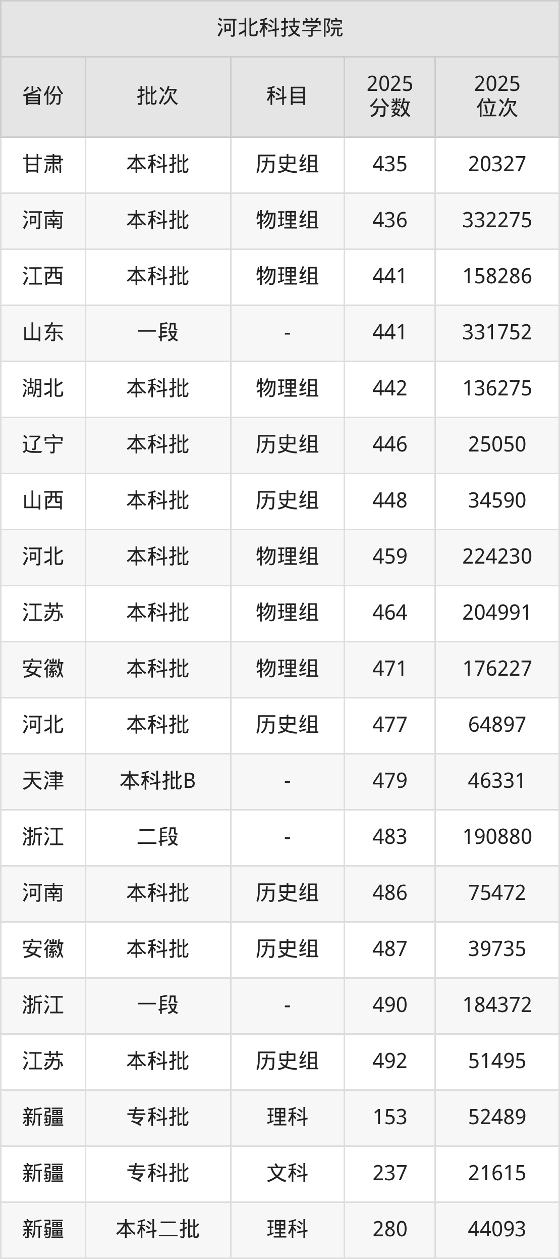 圆梦小编为2026届想要报考河北科技学院的同学整理了:河北科技学院2025年在全国19个省的最低分及录取位次。