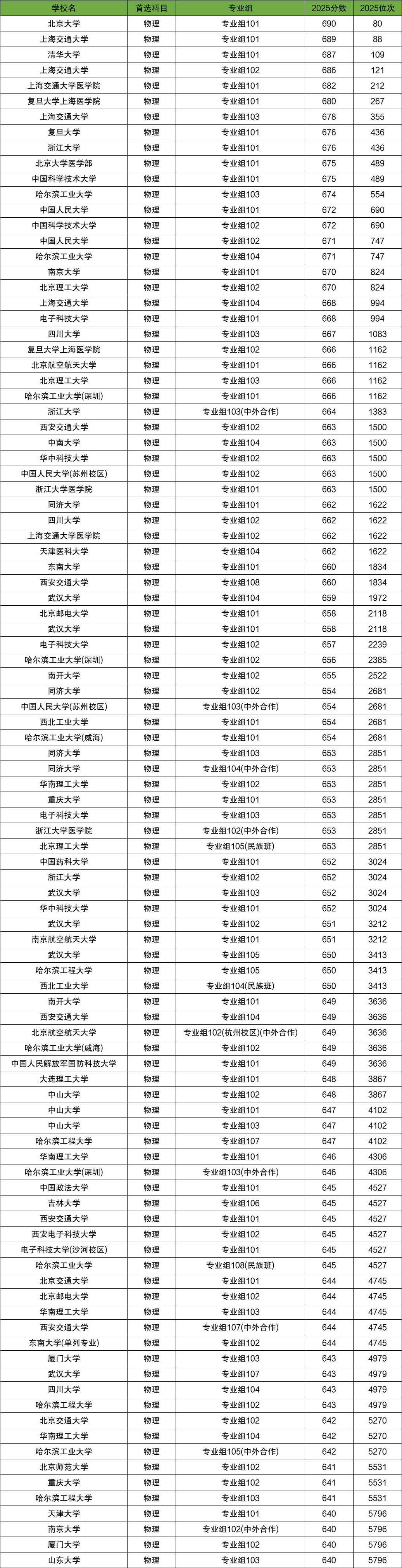 北京大学专业组101:分数线为690分,对应录取位次为80;