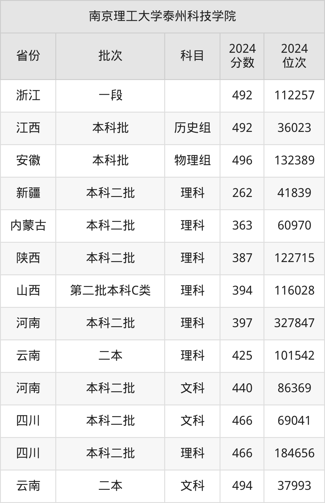 二、南京理工大学泰州科技学院2024年录取分数线汇总