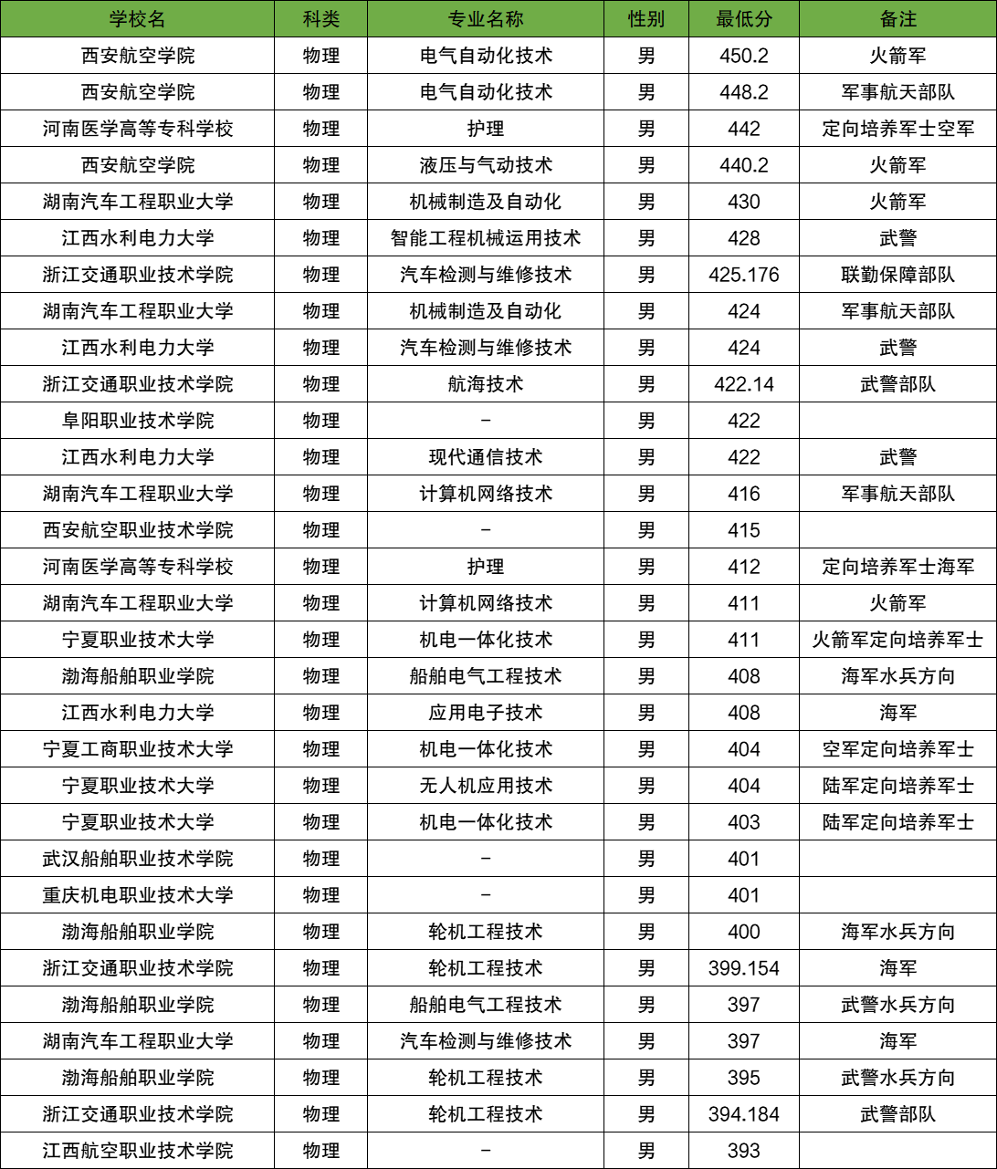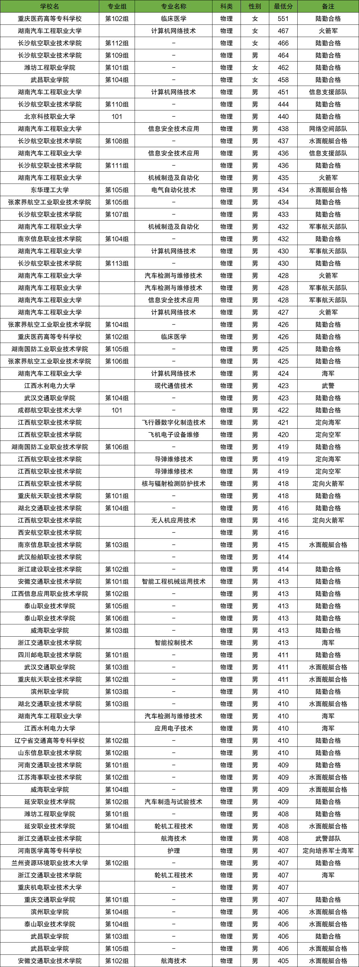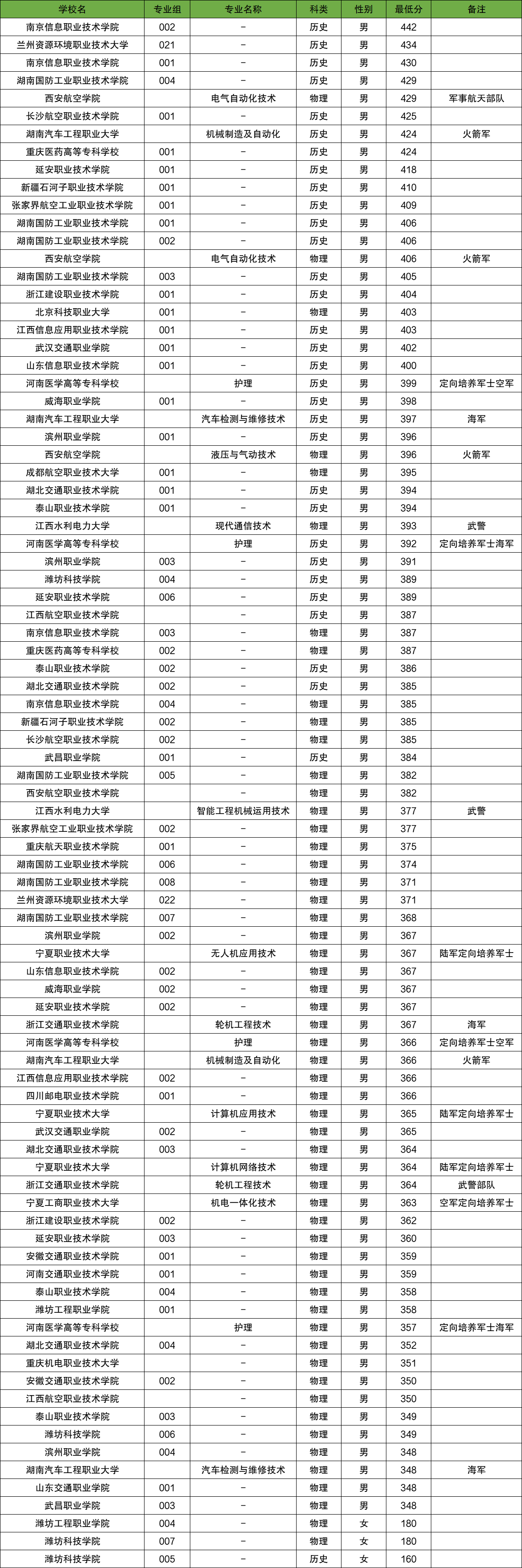 陕西省定向培养军士部分院校最低录取分数线如下:
