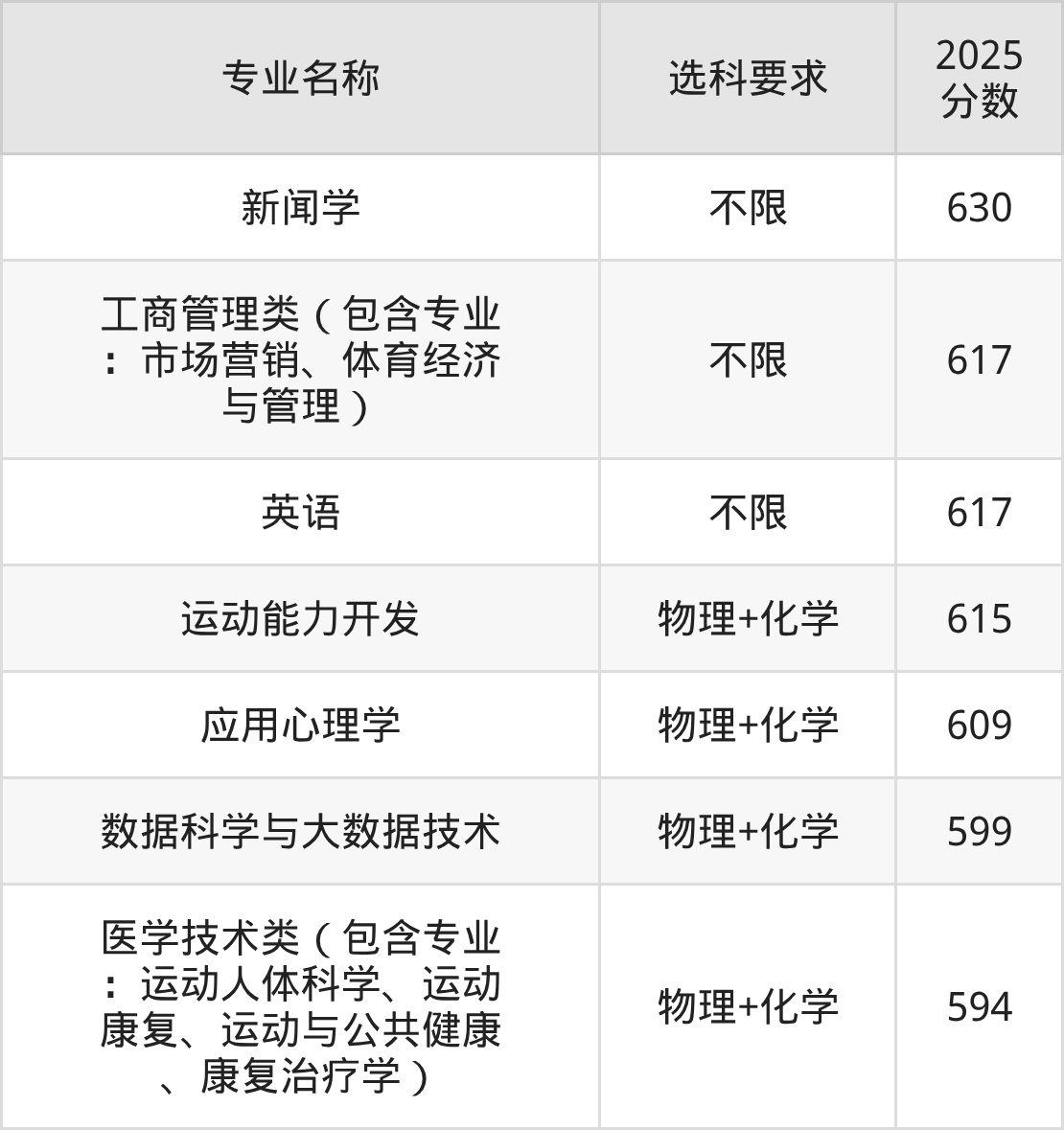 对于浙江高三学生而言,上海体育大学热门专业是:新闻学、工商管理类、英语、运动能力开发、应用心理学、数据科学与大数据技术、医学技术类,2025年在浙江的最低分是594至630。