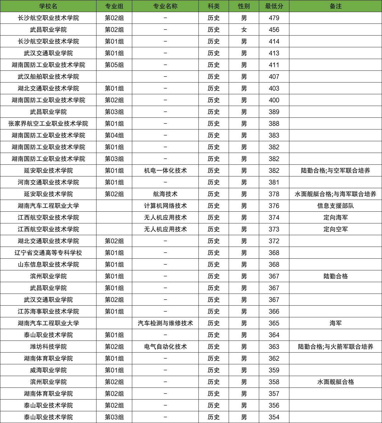 分数线较低的院校及专业组有武昌职业学院(04专业组)402分、渤海船舶职业学院(轮机工程技术)402分、延安职业技术学院(04专业组)406分等。