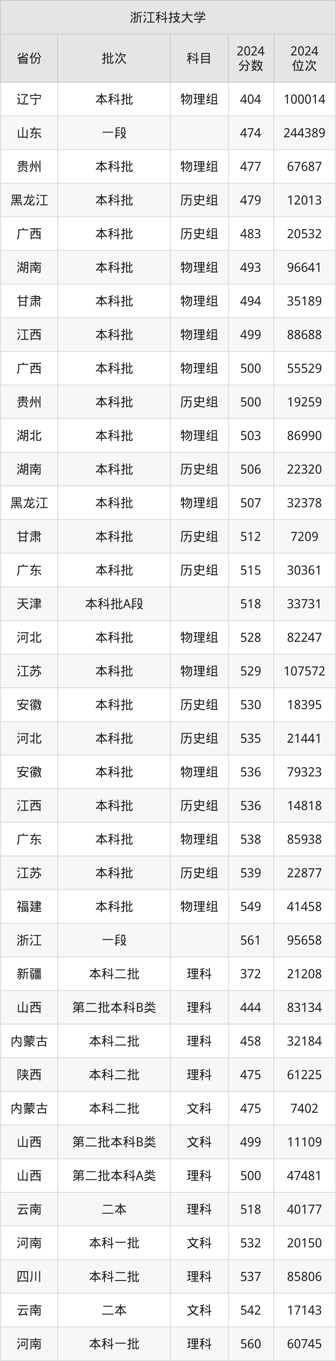 二、浙江科技大学2024年录取分数线汇总