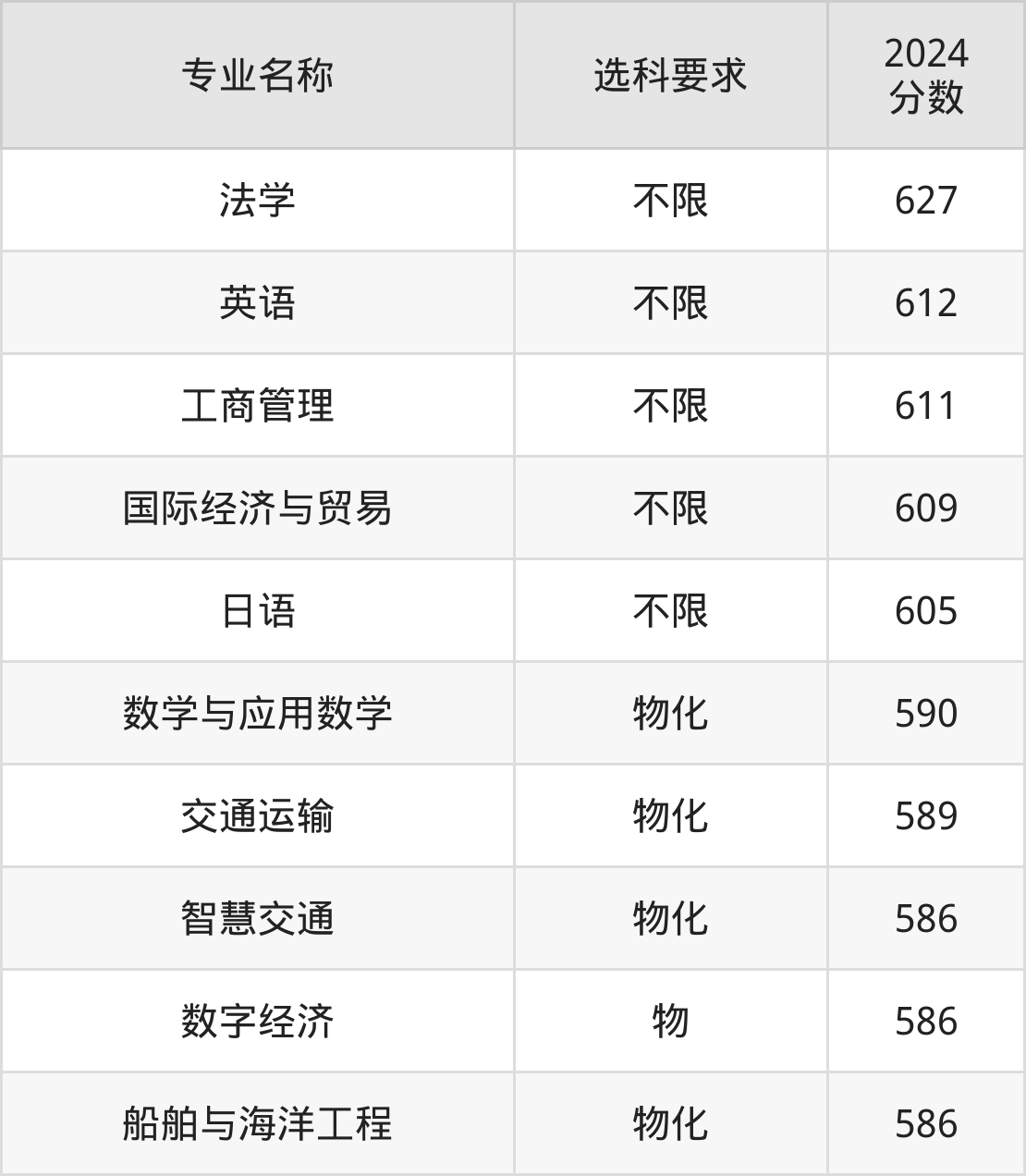 | 专业名称 | 选科要求 | 2024 分数 |