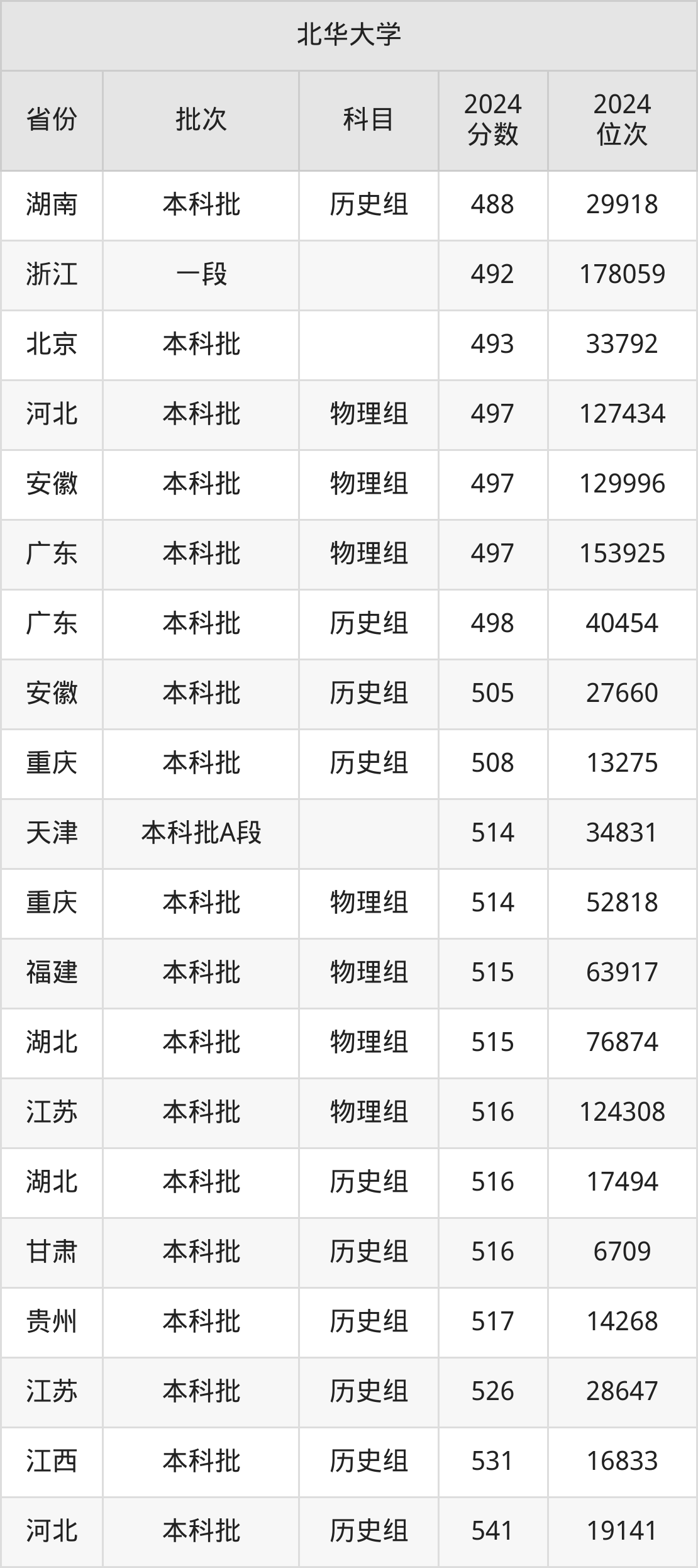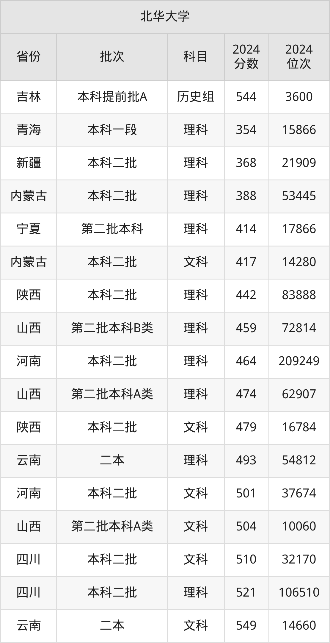 圆梦小编为2025届想要报考北华大学的同学整理了:北华大学2024年在全国30个省的最低分及录取位次。