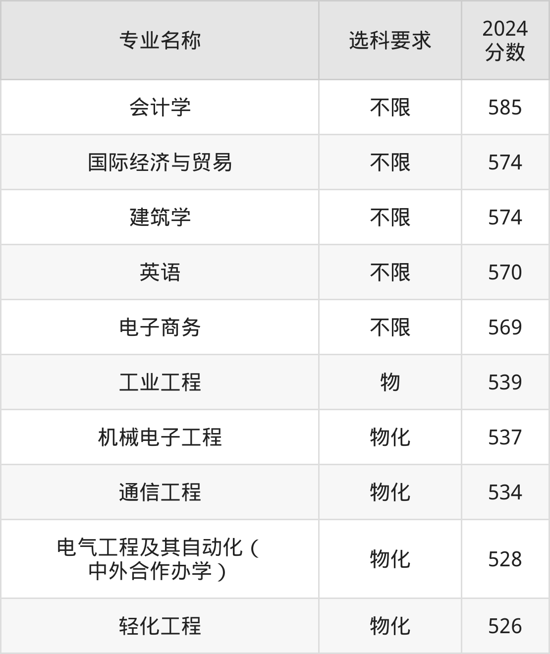 对于浙江高三学生而言,湖南工程学院热门专业是:会计学、国际经济与贸易、建筑学、英语、电子商务、工业工程、机械电子工程、通信工程、电气工程及其自动化、轻化工程,2024年在浙江的最低分是526至585。