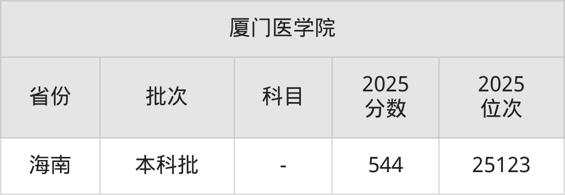 圆梦小编为2026届想要报考厦门医学院的同学整理了:厦门医学院2025年在全国20个省的最低分及录取位次。