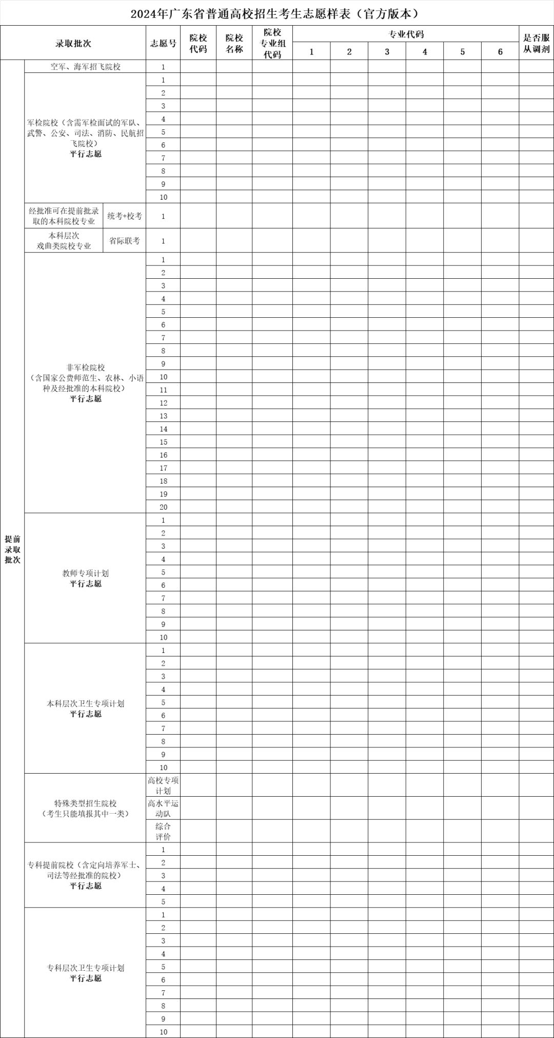 2024年广东省高考志愿样表(官方版)整理如下,供大家参考。