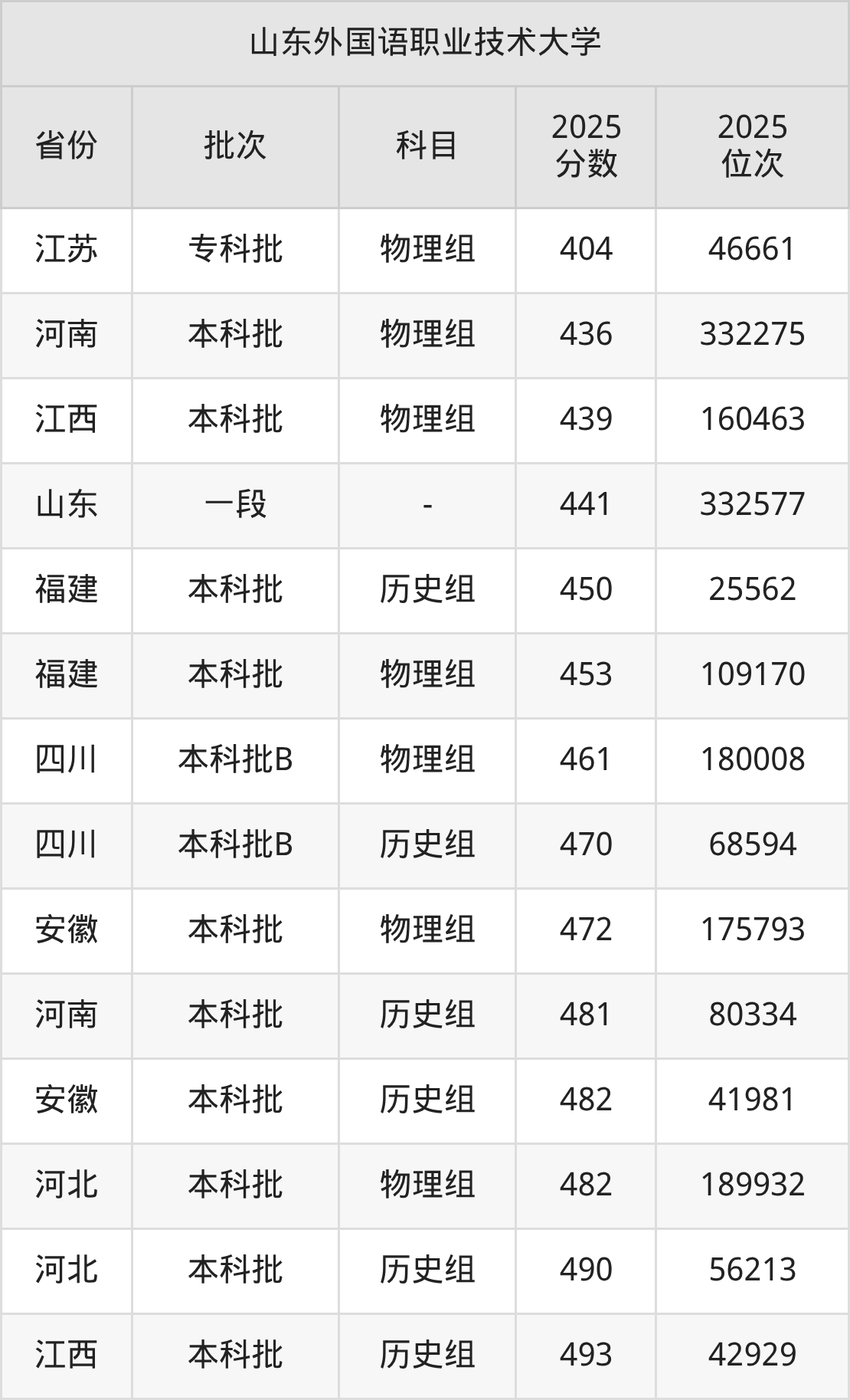 二、山东外国语职业技术大学2025年录取分数线汇总