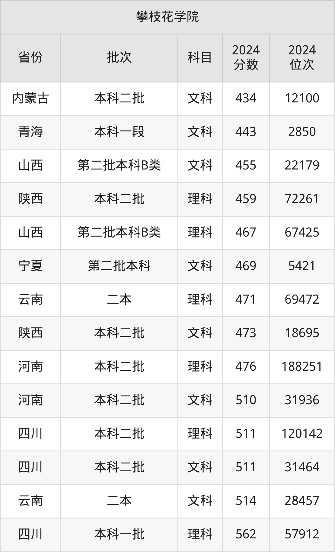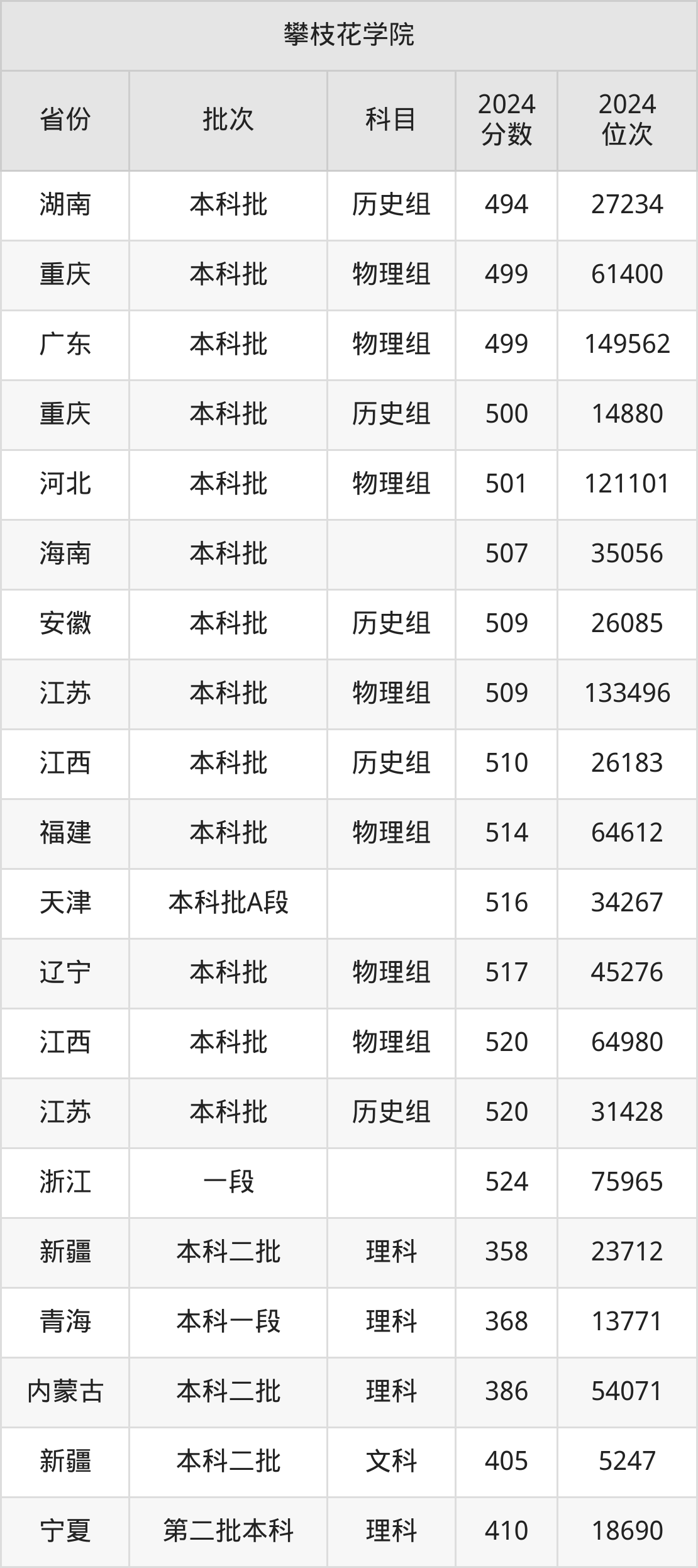 圆梦小编为2025届想要报考攀枝花学院的同学整理了:攀枝花学院2024年在全国30个省的最低分及录取位次。