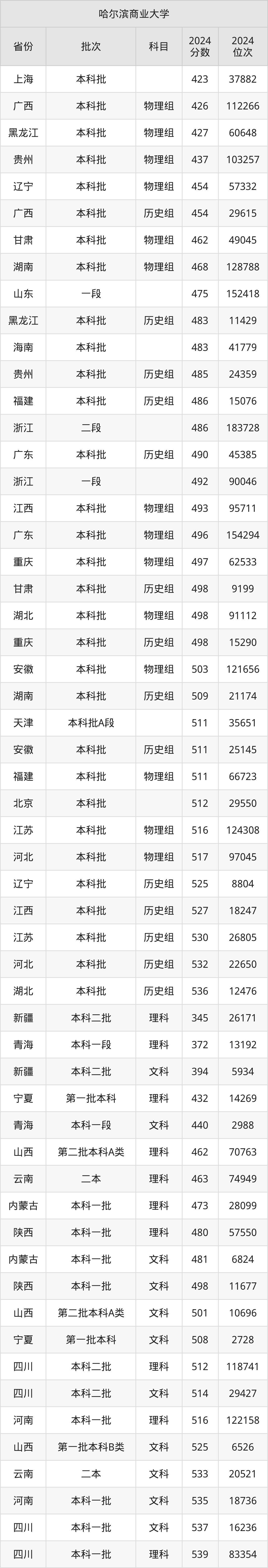 圆梦小编为2025届想要报考哈尔滨商业大学的同学整理了:哈尔滨商业大学2024年在全国29个省的最低分及录取位次。